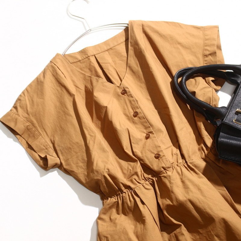 シャツ系生地、ウエストゴムギャザー、可愛いラインのシンプルデザインです。