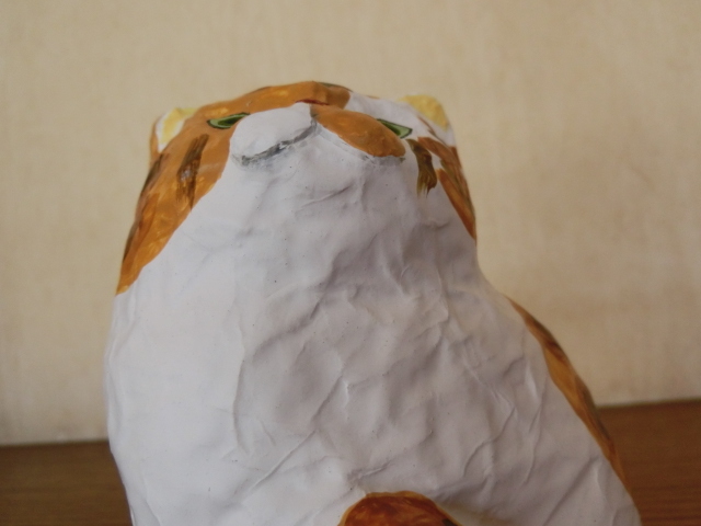 ◆作家物 新品 張り子 猫 キジ白 CAT ねこ papier mache◆
