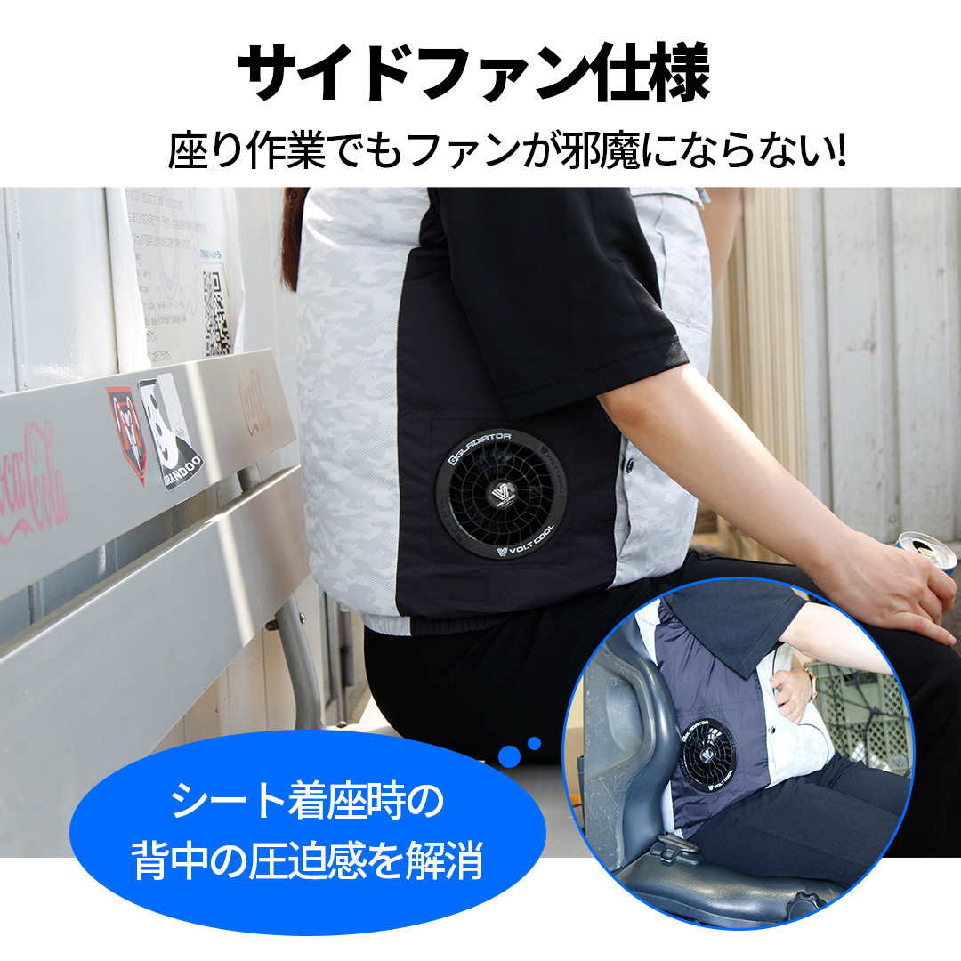 シート着座時にファンが邪魔にならないサイドファン仕様。