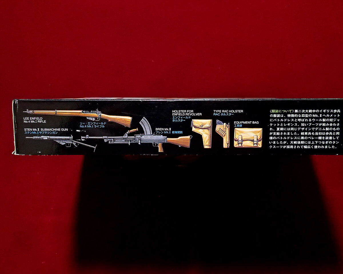 ●第2次大戦期、連合軍の勝利に貢献したイギリス軍の兵士が再現されています。周囲を警戒しながら行軍する兵士、ライフルを構えて戦闘中の兵士など幅広いポーズの歩兵8体と軽車輌の乗員2体、戦車兵4体、農夫1体の合計15体がセットされています。兵士の装備品や戦車兵のタンクスーツなどノルマンディー上陸以降の北西ヨーロッパ戦線をイメージしたジオラマの色々なシーンに活用できる汎用性の高いキットです。