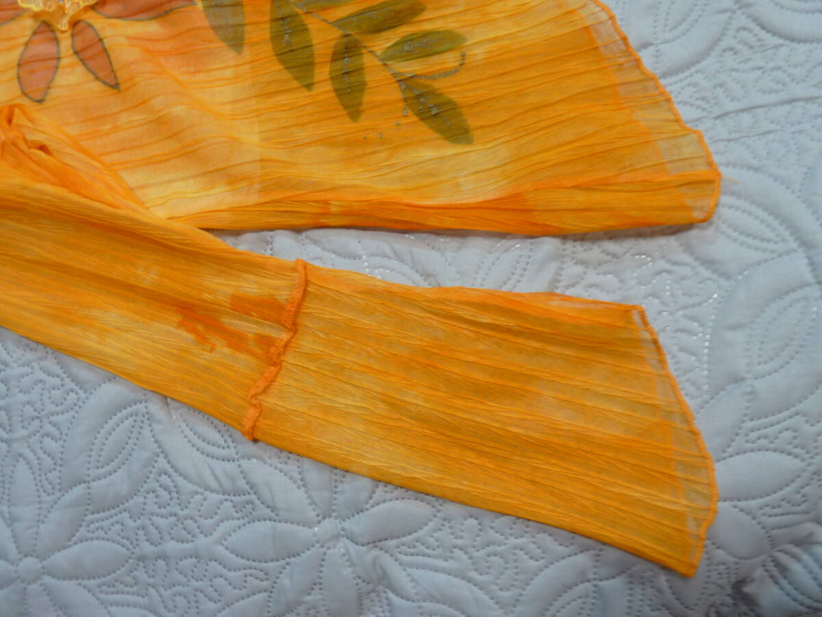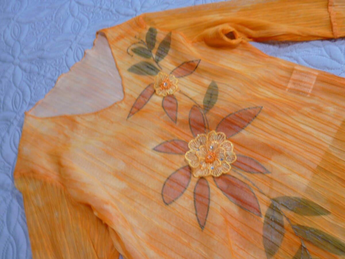 春夏 新品タグ付き オレンジ 染め風 地模様 お花柄 プルオーバー カットソー L M ゆうパケット230円発送 同梱OK