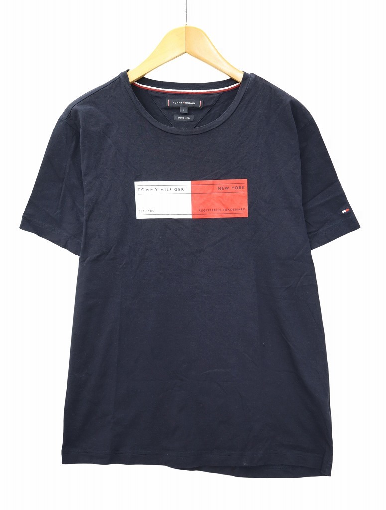 トミーヒルフィガー TOMMY HILFIGER クルーネック 半袖 プリント プルオーバー カットソー Tシャツ L BLACK(ブラック) 春夏 メンズ