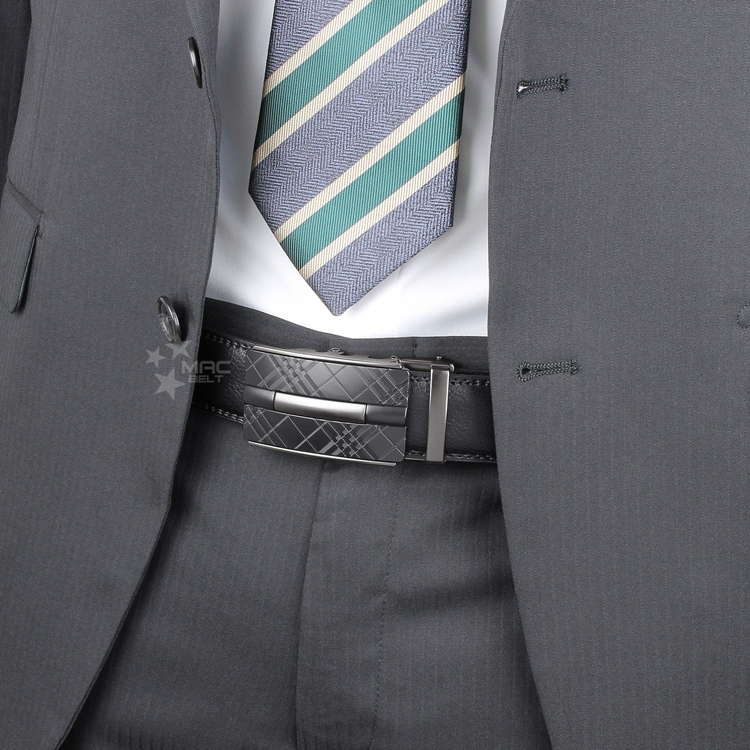 サイズ調整はいつでもワンタッチで自由自在。快適レザーベルトです。