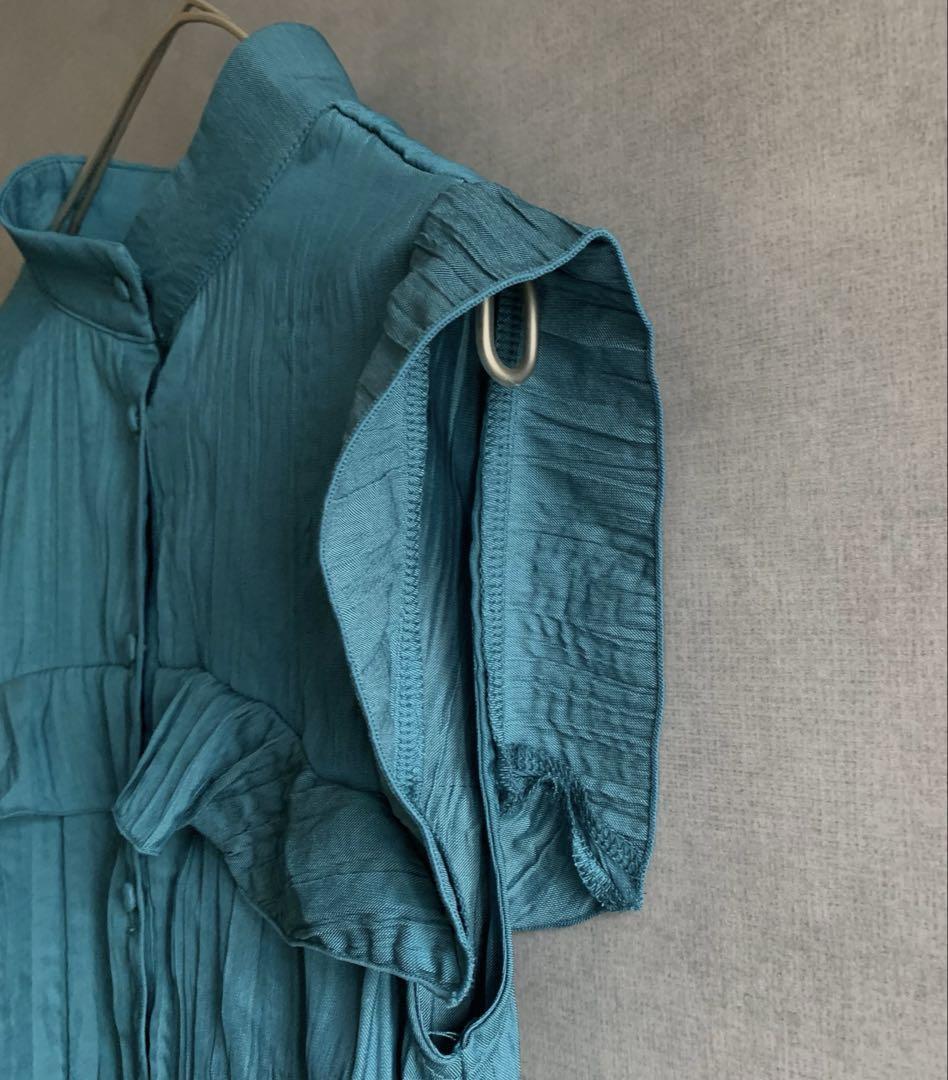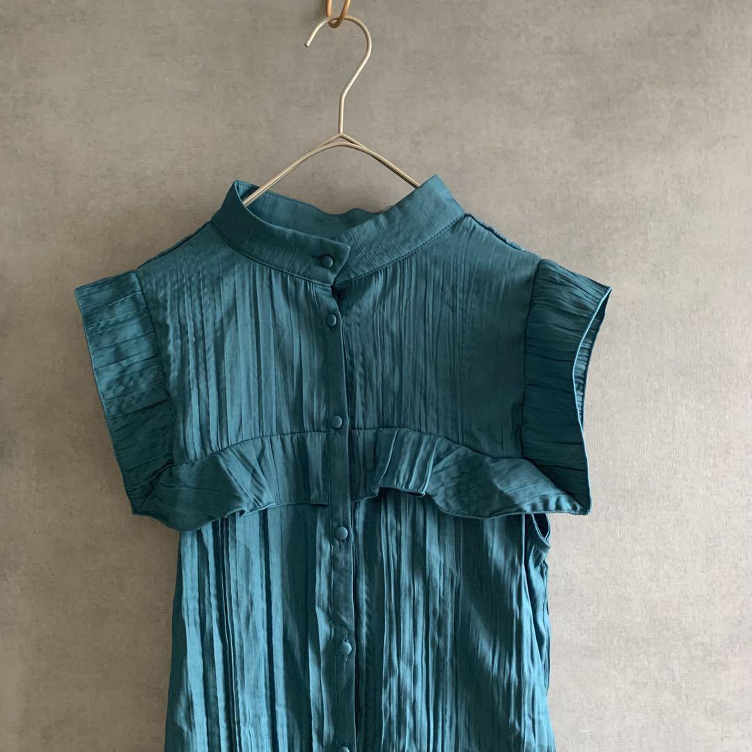スッキリした首元とフロントボタン仕様で、甘すぎず大人っぽく着こなせます◎