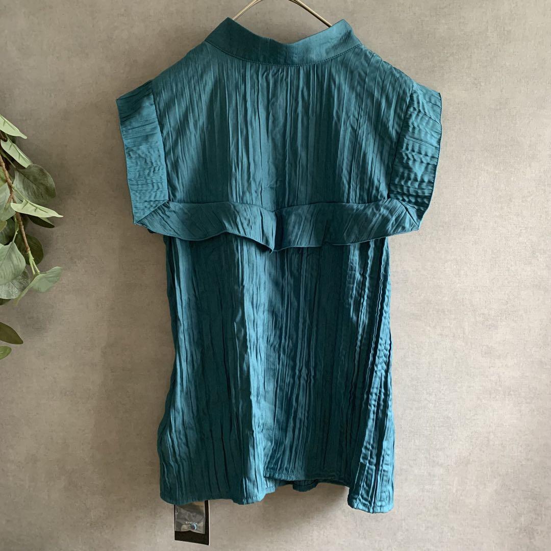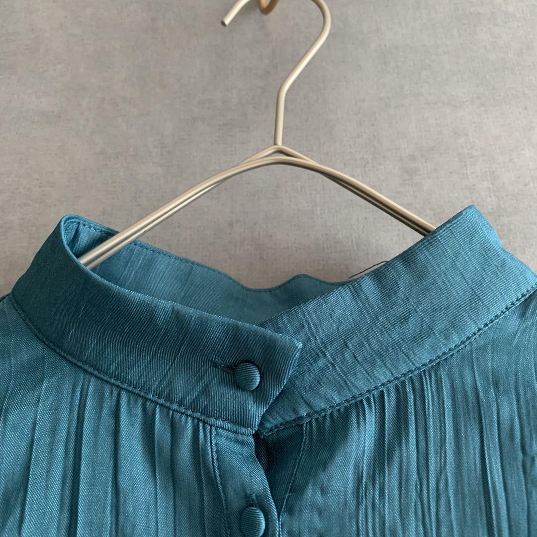 上品な光沢感とシャーリング風の表情が魅力の、ミニハイネックブラウスです。