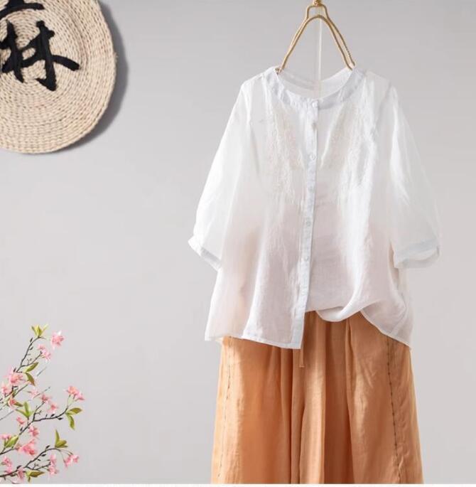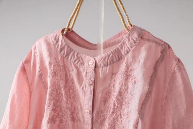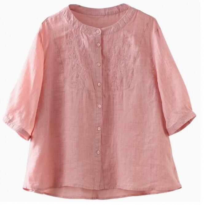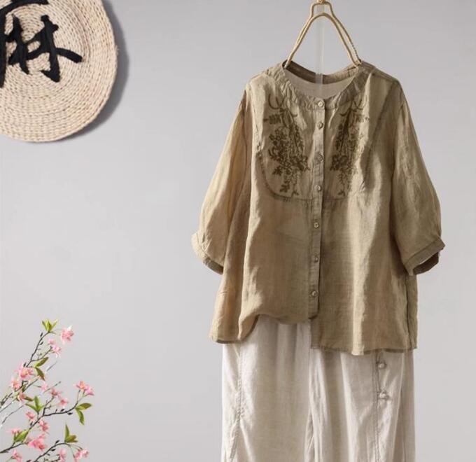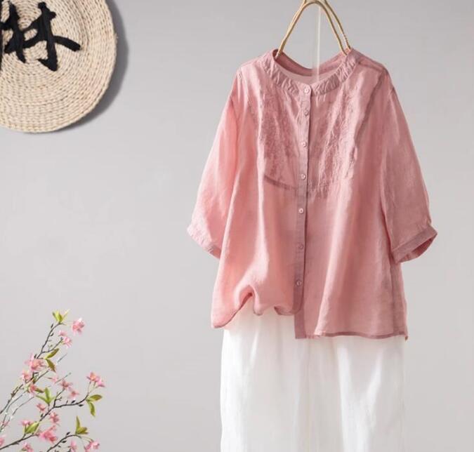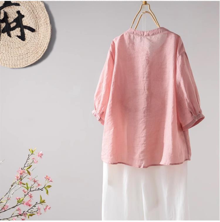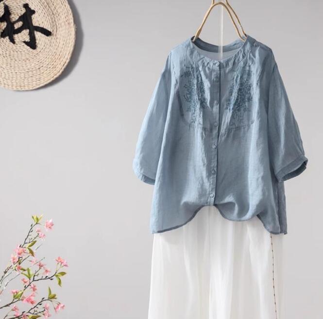 人気品大人気 チュニック シャツ ブラウス きれいめ ナチュラル 着痩せ ゆったり 無地 涼しい トップス 綿麻 七分袖 ブラウス ブルー