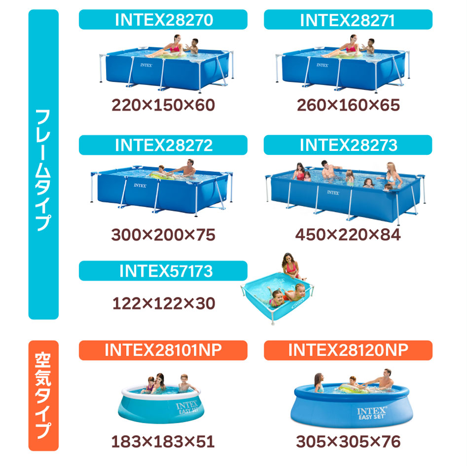 以下のプールサイズにご使用いただけます。
