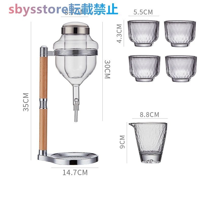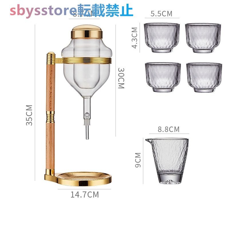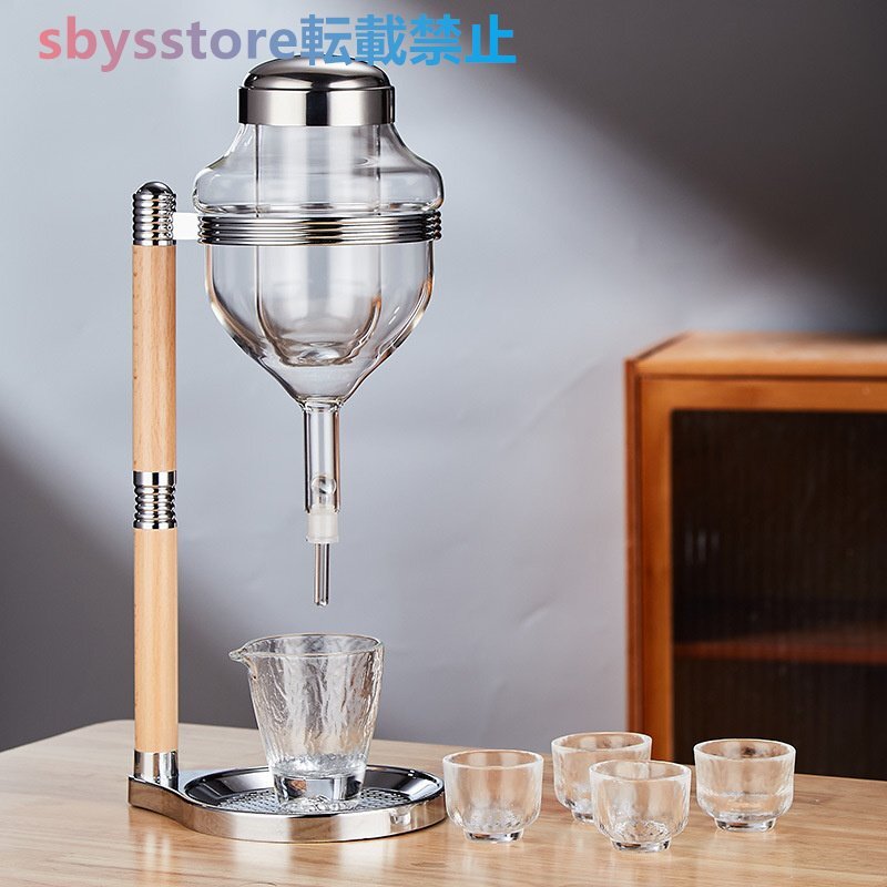 冷酒器セット カップ5個付き 日本酒 ディスペンサー 酒 ガラス酒器セット 和風冷酒ポット 冷酒耐熱ガラス 酒器 ワインセット