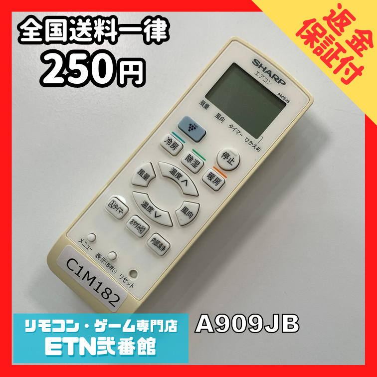 C1M182【送料250円】エアコン リモコン / SHARP シャープ A909JB 動作確認済み★即発送★ * 冷房 暖房