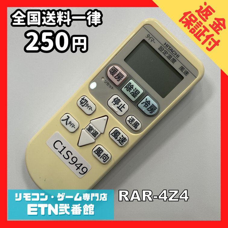 C1S949 【送料250円】エアコン リモコン / 日立 ヒタチ HITACHI RAR-4Z4 動作確認済み★即発送★ 冷房 暖房