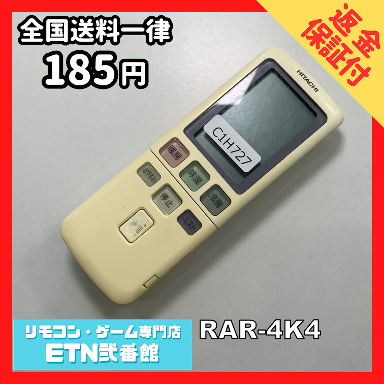 C1H727 【送料250円】エアコン リモコン / 日立 ヒタチ HITACHI RAR-4K4 動作確認済み★即発送★ 冷房 暖房