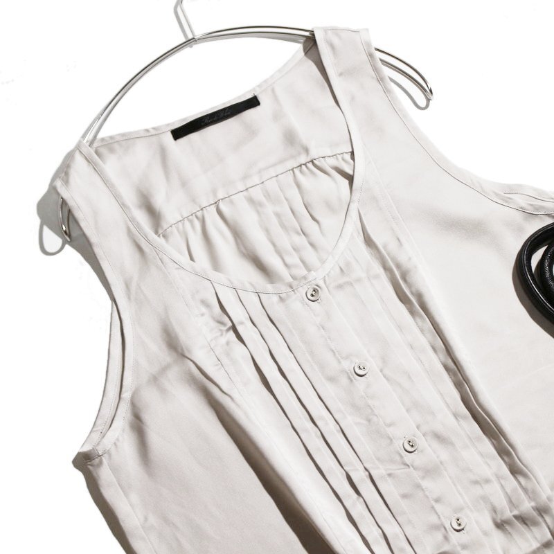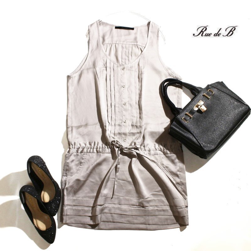 美品 Rue de B リューデベー 株) ロートレアモン 夏 艶 ピンタック とろみ サテン ノースリーブワンピース 2 グレー ベージュ チュニック