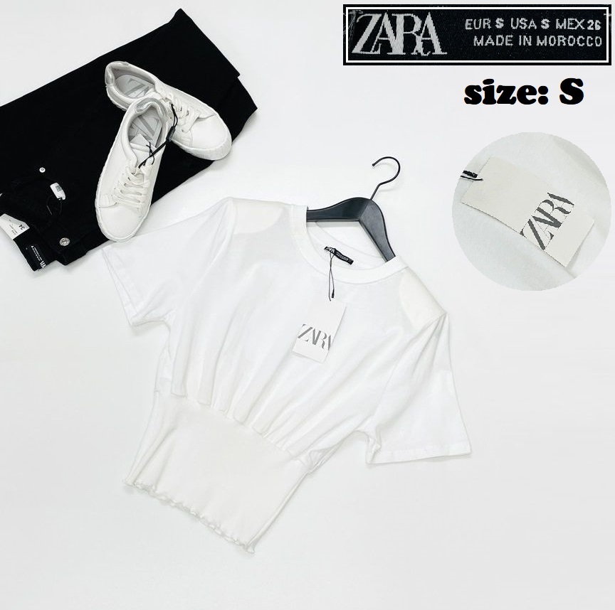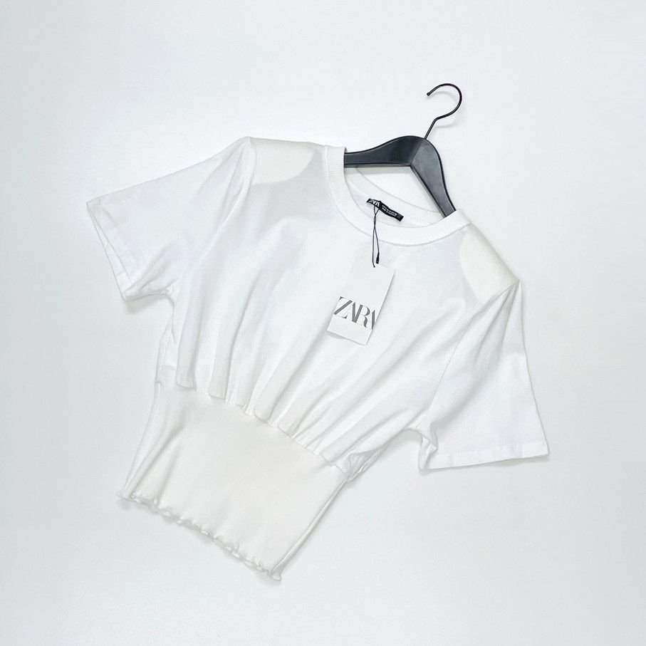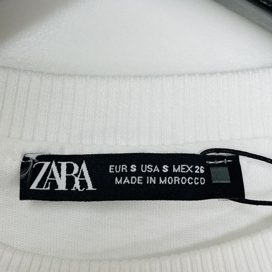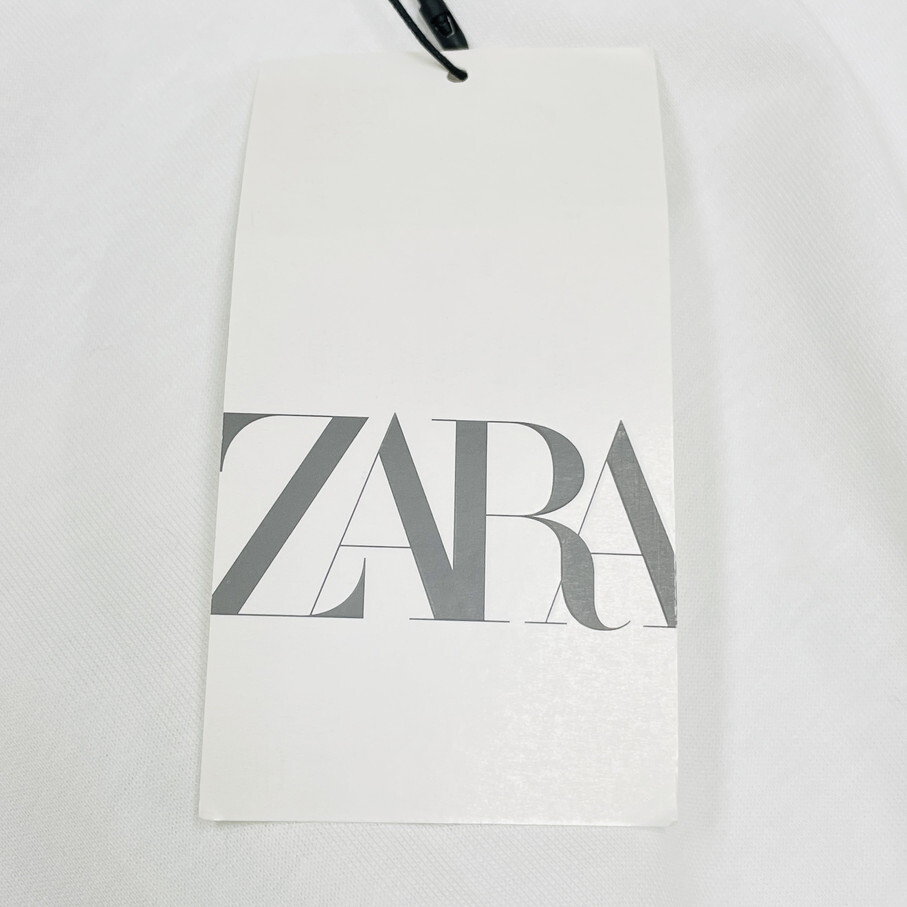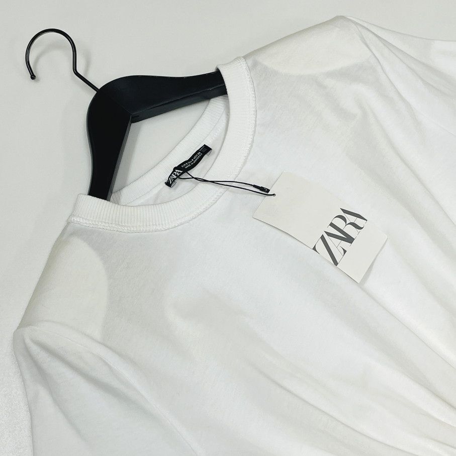 ZARA /S/ ホワイト 半袖Tシャツ ショルダーパッド レディース タグ付き カジュアル トップス通勤大人可愛いデイリー生地コットン 春夏 ザラ