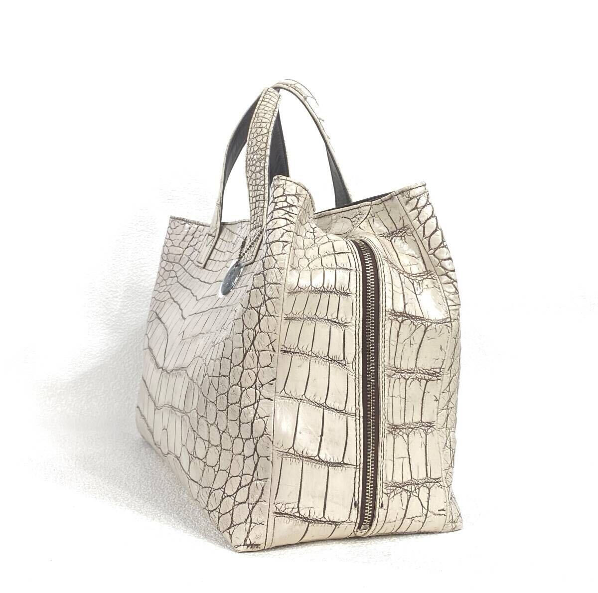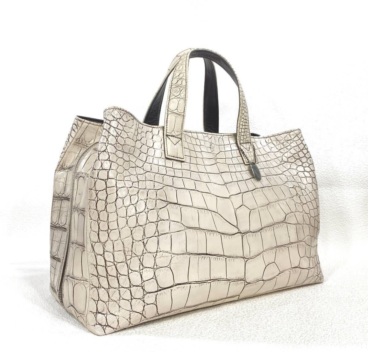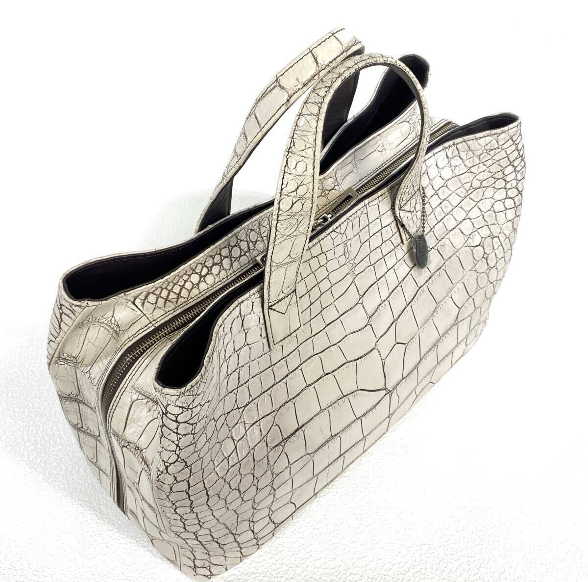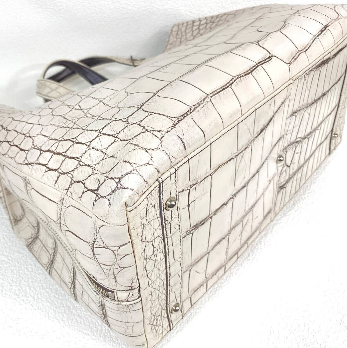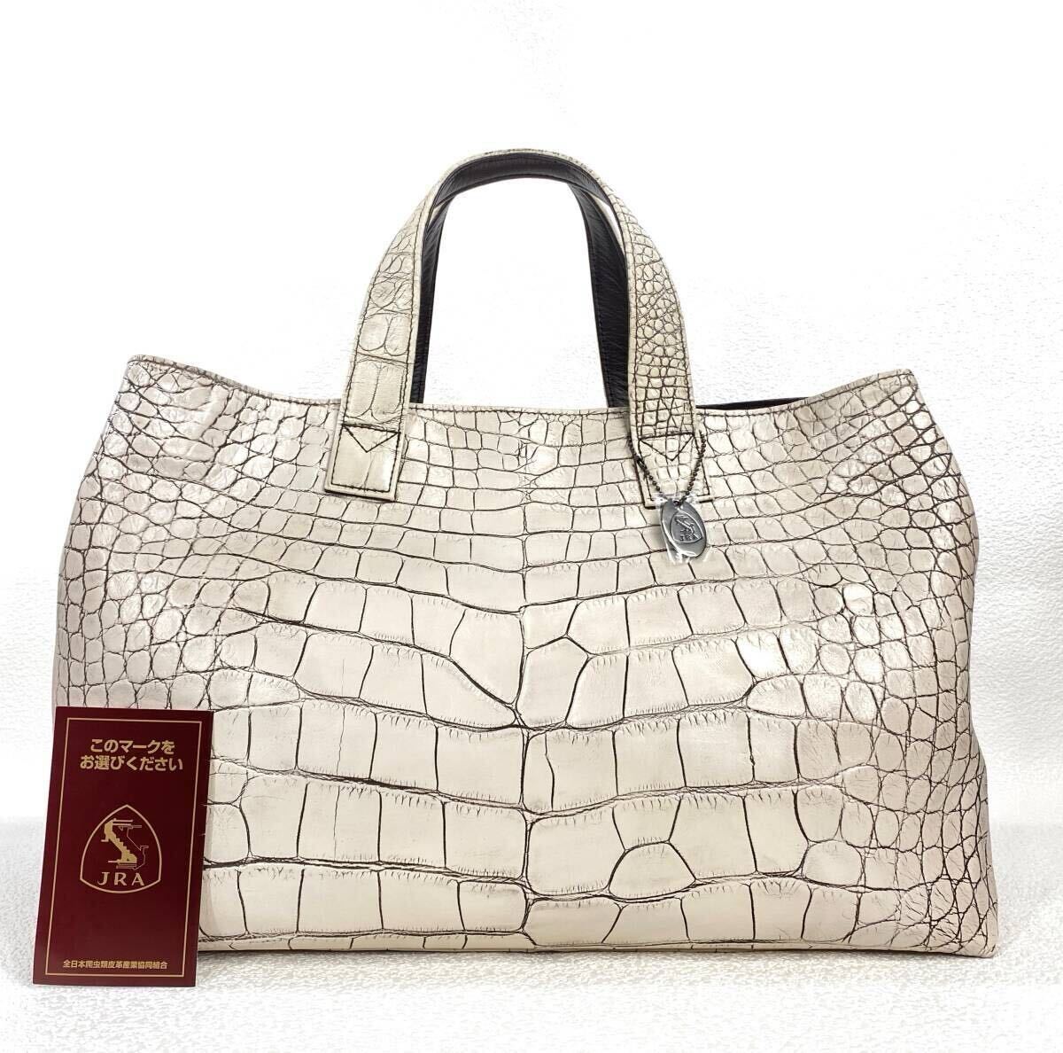 ☆未使用☆ クロコダイル アリゲーター JRA 日本製 ボストンバッグ 目地染め バニラ
