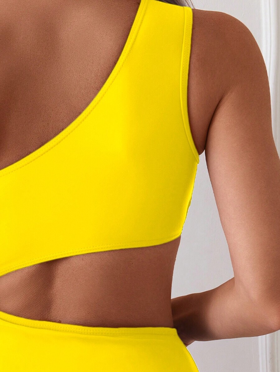 レディース 水着 ワンピース 夏用女性ソリッドカラー アシンメトリーネック ノースリーブ スリムフィット カジュアル ワンピース水