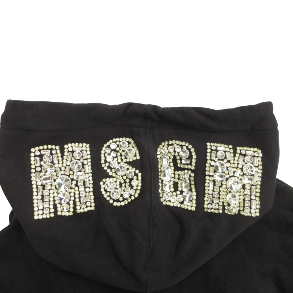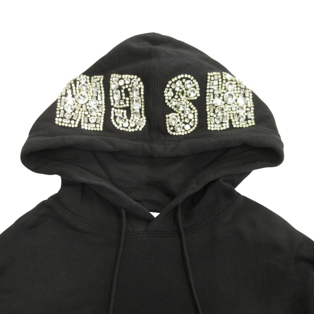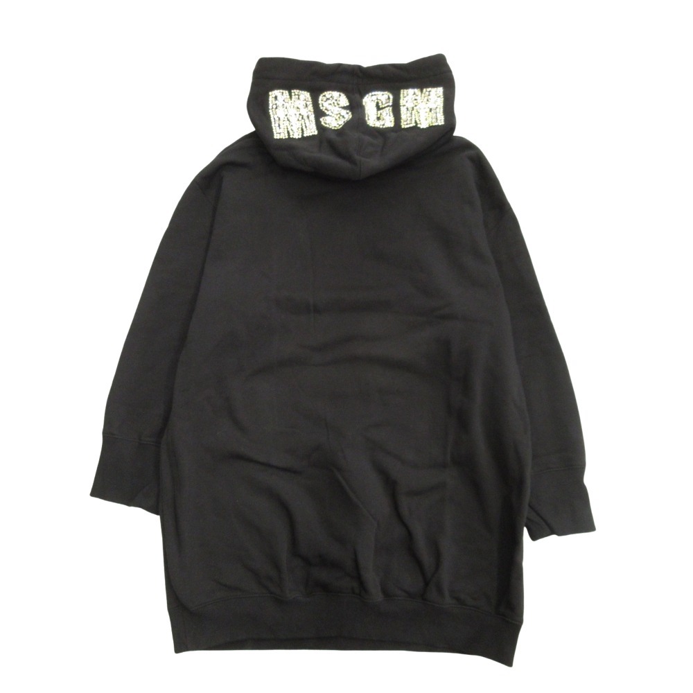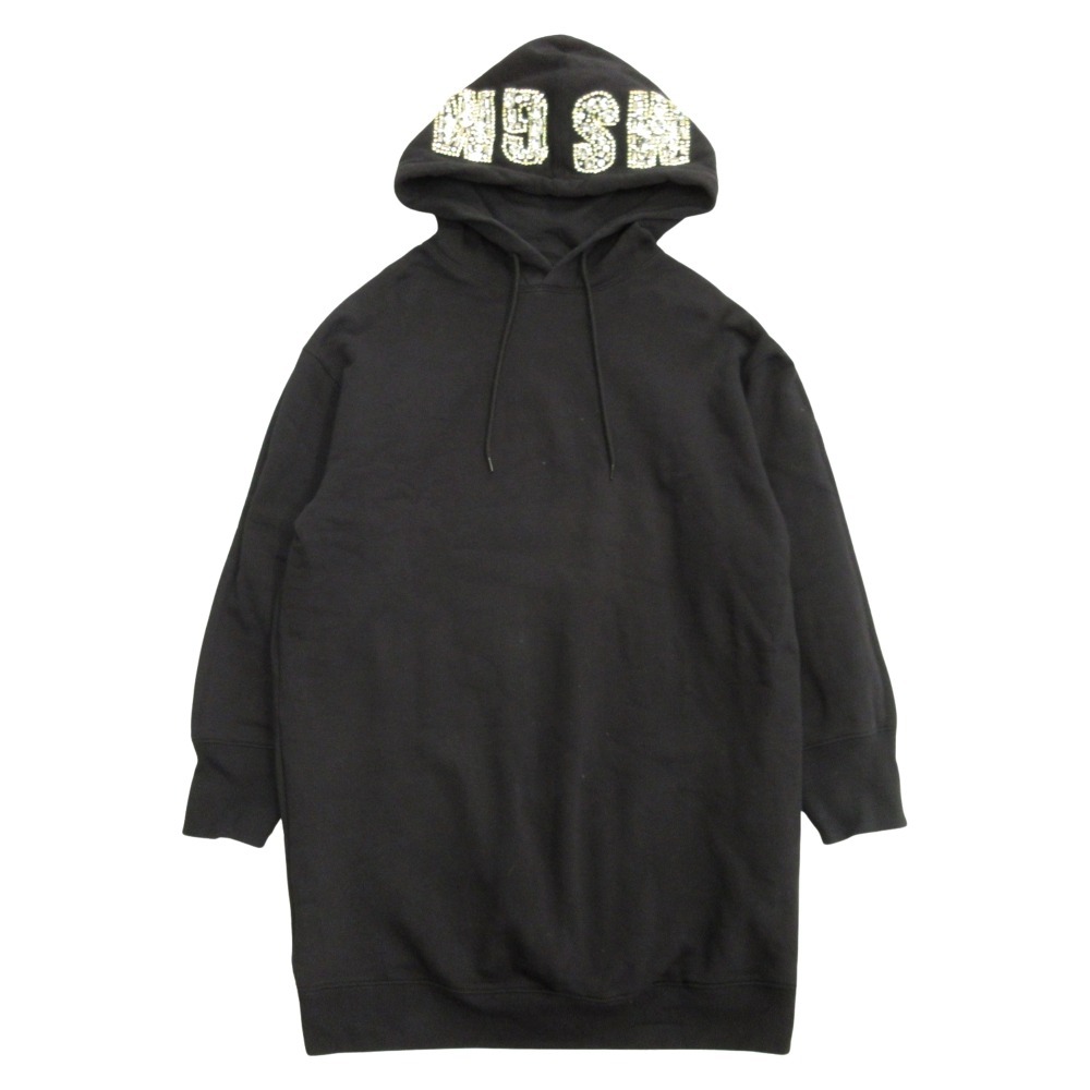 MSGM エムエスジーエム ビジューロゴ パーカー スウェット ワンピース フーディ ラインストーン S 黒 ブラック