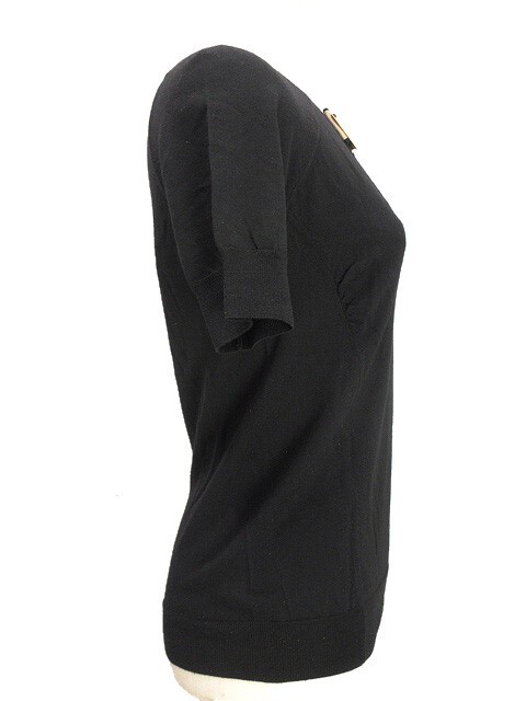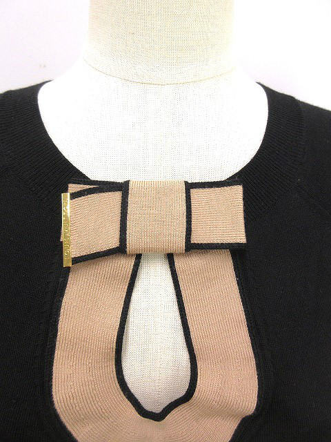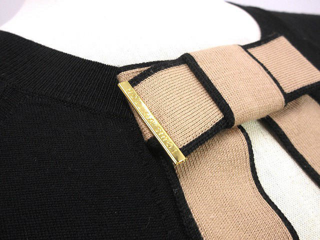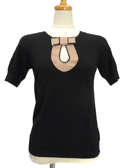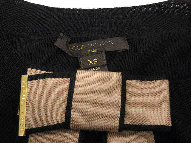 ルイヴィトン LOUIS VUITTON リボン ニット トップス XS ブラック 黒 ウール 半袖 カットソー レディース