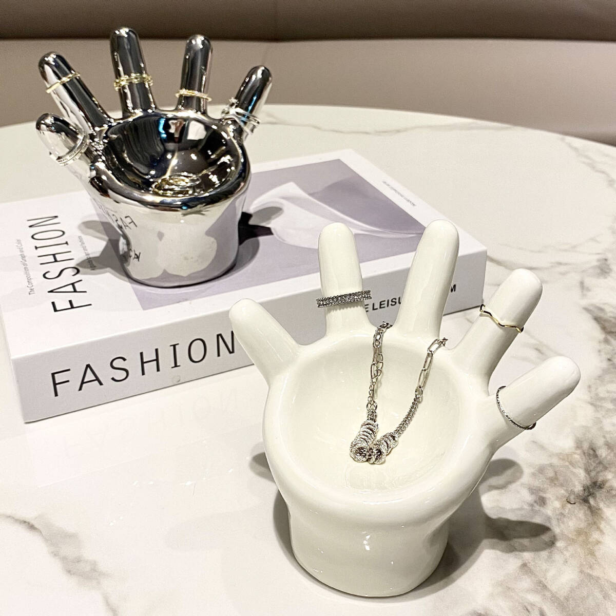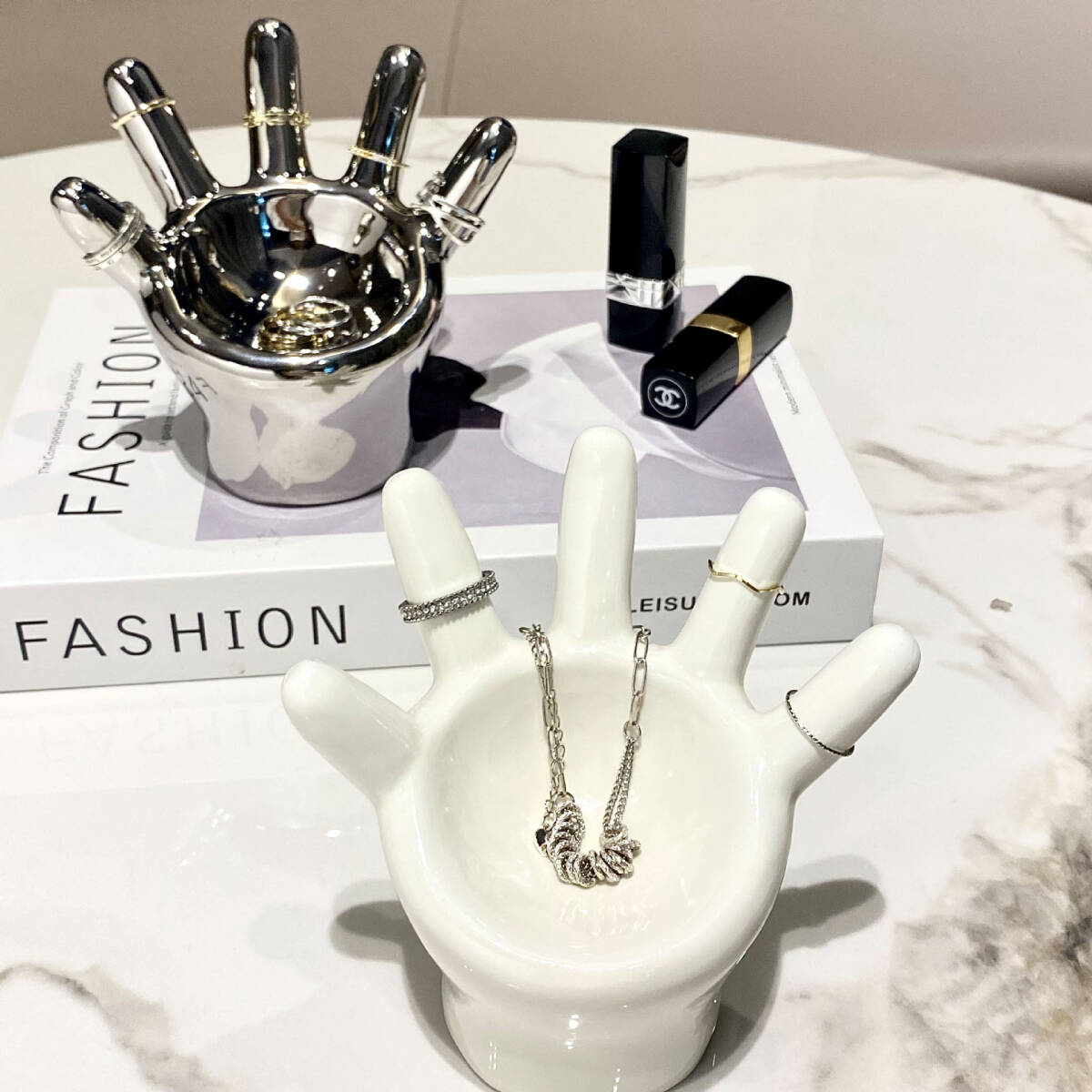 こちらはユニークなハンドシェイプのアクセサリーディスプレイスタンドです。ピアス、指輪、ネックレスなどの小物を整然と収納し、おしゃれに展示できるアイテムです。インテリアとしても存在感があり、ルームの雰囲気をアップグレードさせます。