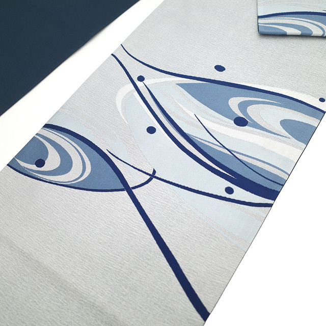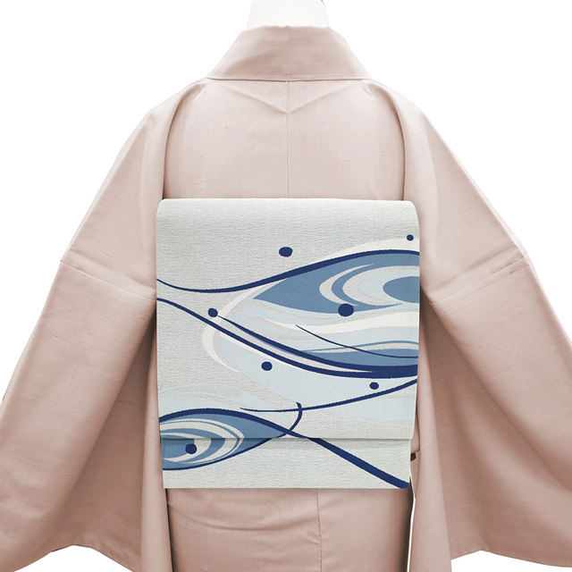 藍色やブルーグレー・水色 などで水文が織り上げられた おしゃれな 袋帯 です。