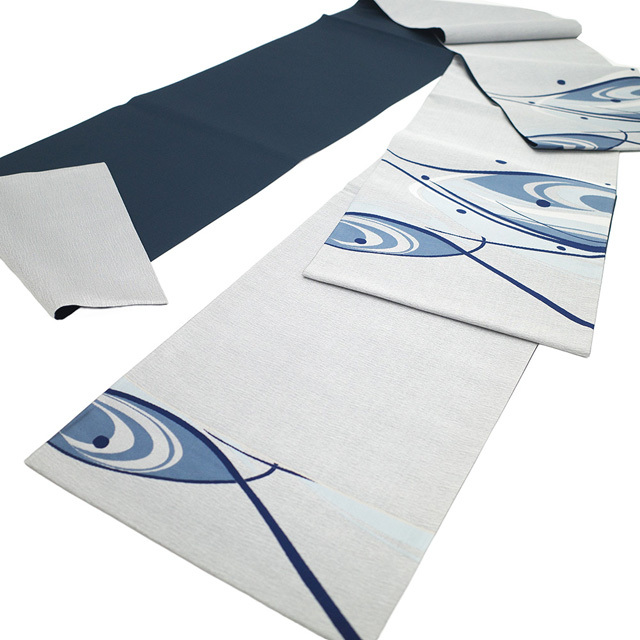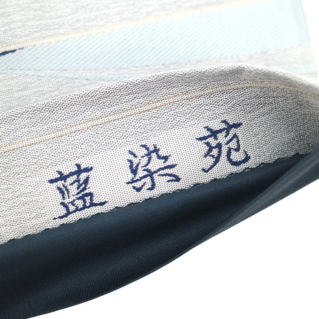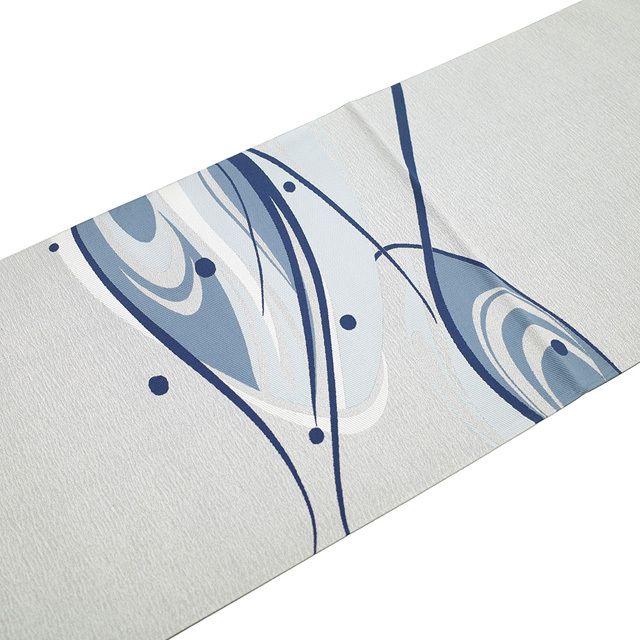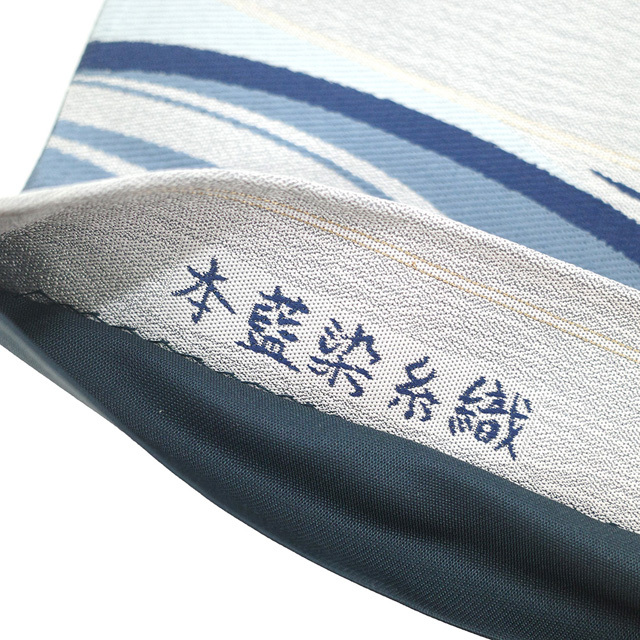 袋帯 未使用 正絹 藍染苑 本藍染糸織 京都 西陣 ライトグレー 水文 おしゃれ 上質 カジュアル 新古品 仕立て上がり みやがわ sb54120