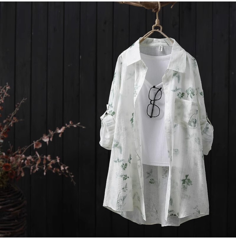 新作 チュニック 爽やか花柄 ワイシャツ 大人可愛 ゆったり オシャレ フリーサイズ ナチュラル 綿100% 日焼け防止 タイプ黒