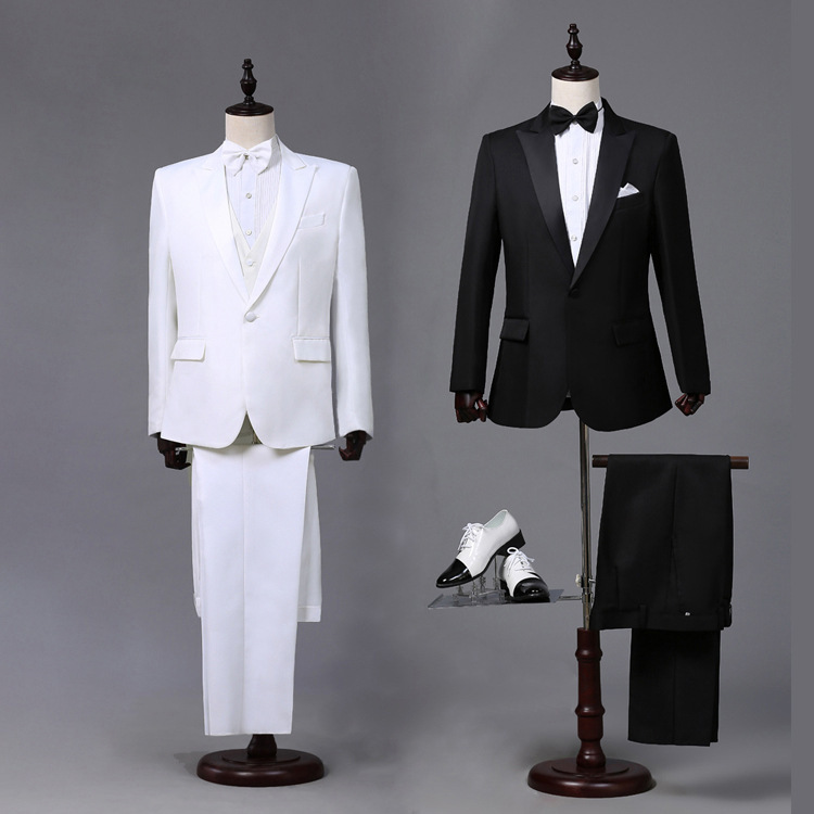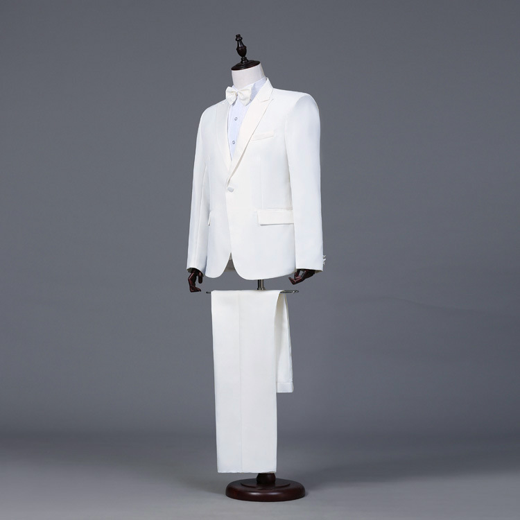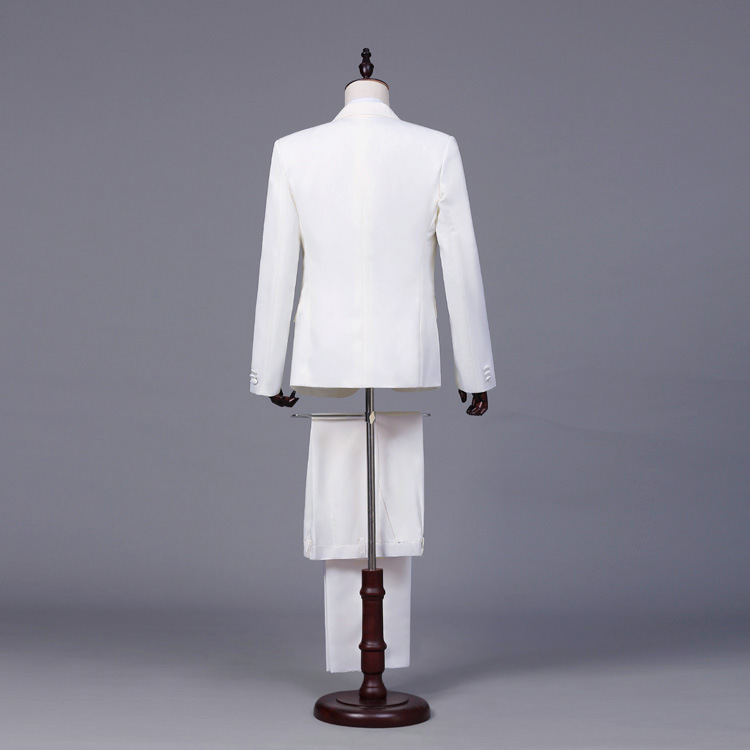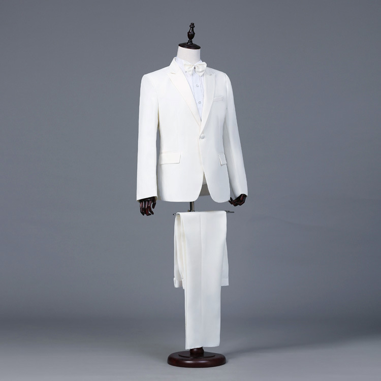 人気品上質 2点セット ホワイト(白)シングル タキシード ステージ衣装メンズ スーツセット 上着 ズボンXXS -2XL演奏会舞台白2色