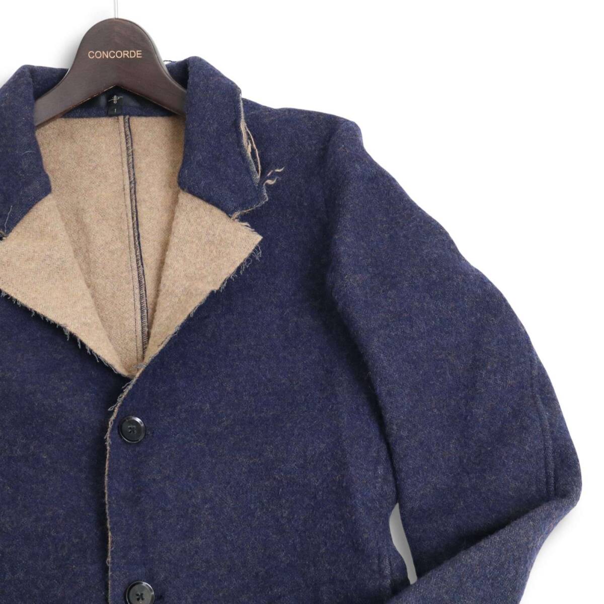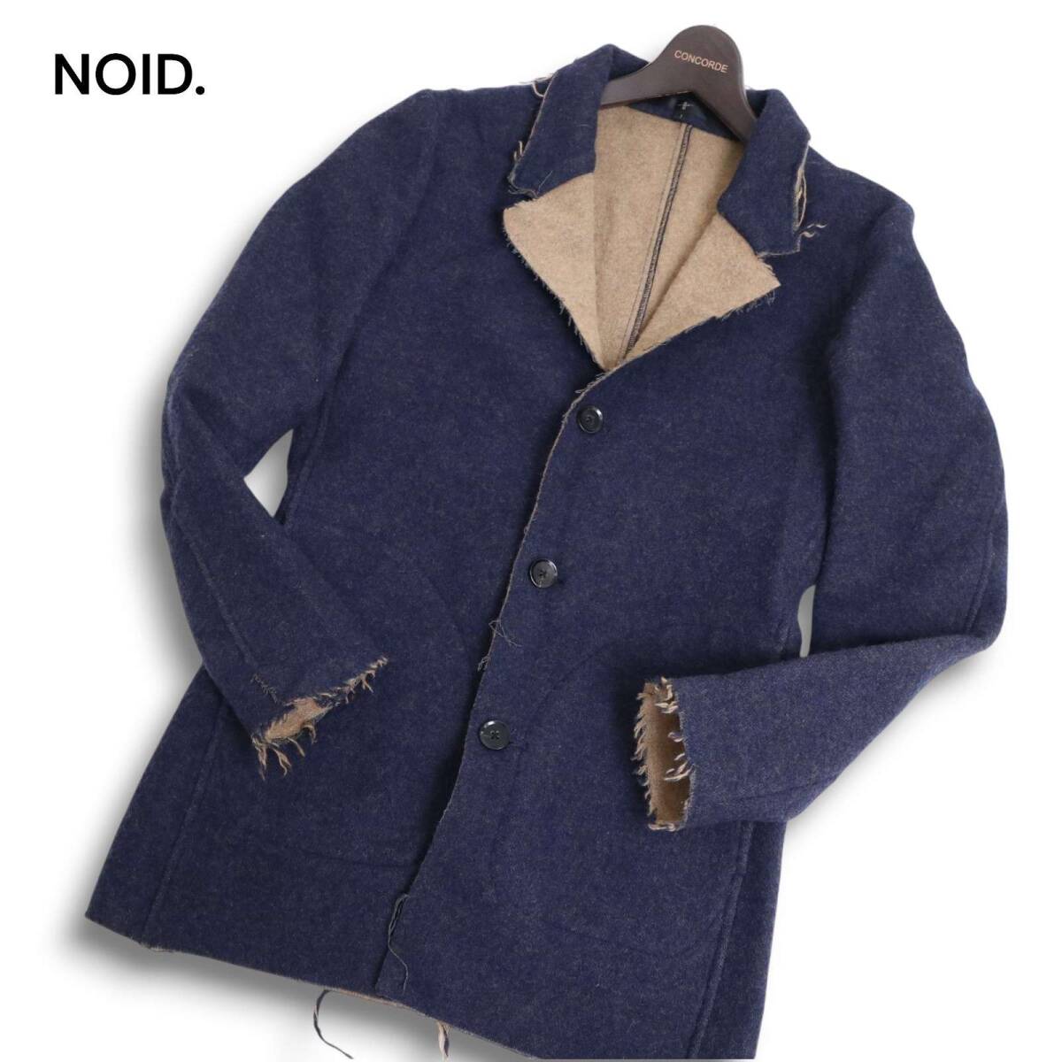 NOID. ノーアイディー 秋冬 Wフェイス ウール モッサ★ スタンド ラペル JKT ジャケット Sz.1 メンズ ネイビー