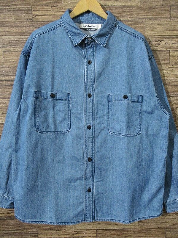 送無 極美品 定価33,000 25SS新作 SandWaterr サンドウォーター RESEARCHED WORK SHIRT 8.5oz デニム リサーチド ワーク シャツ インディゴ