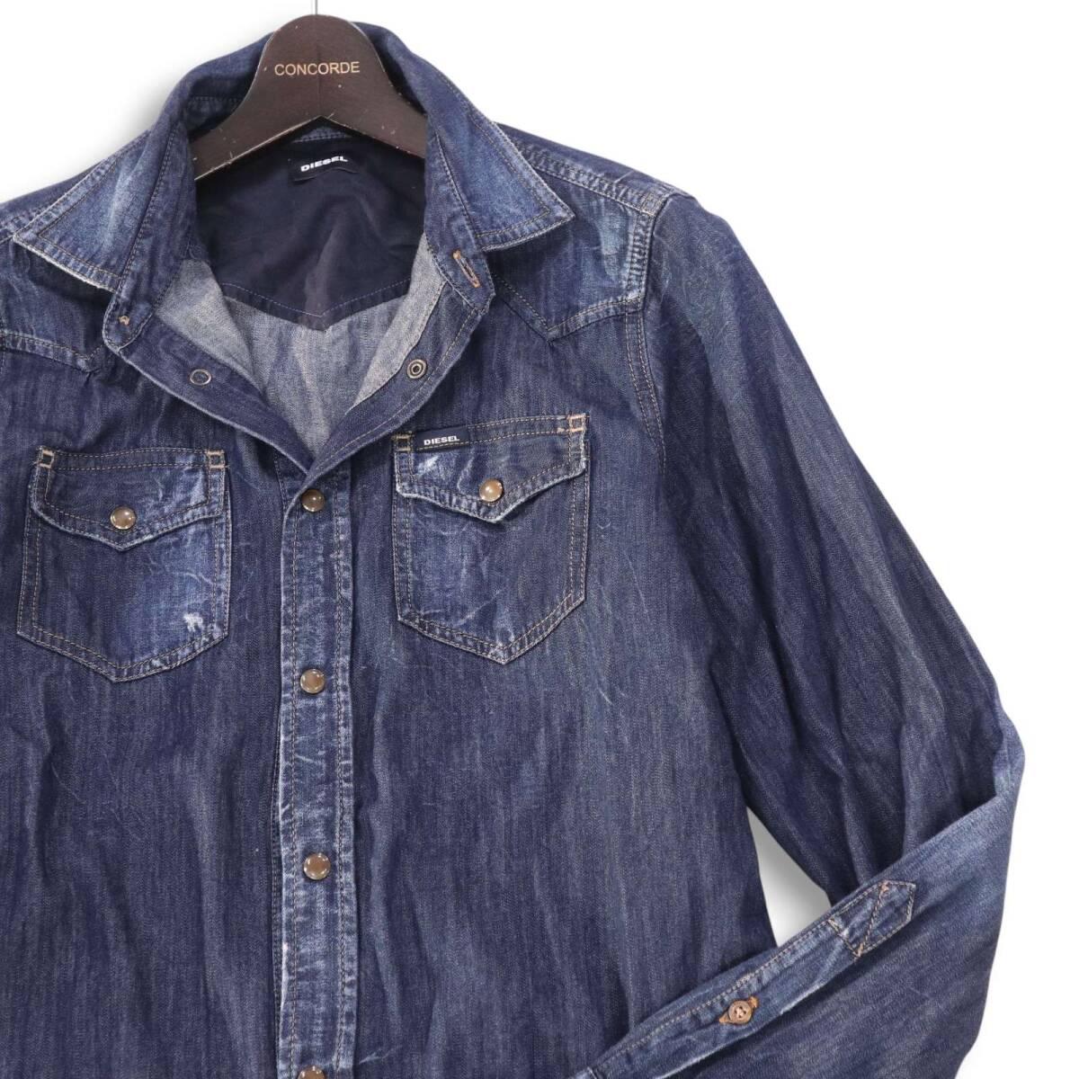 DIESEL ディーゼル 【NEW-SONORA】 通年 ヴィンテージ加工★ 長袖 ウエスタン デニム シャツ Sz.S メンズ インディゴ