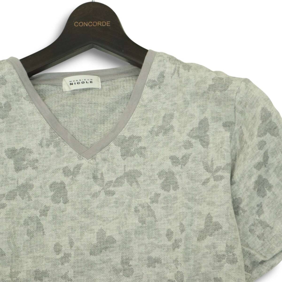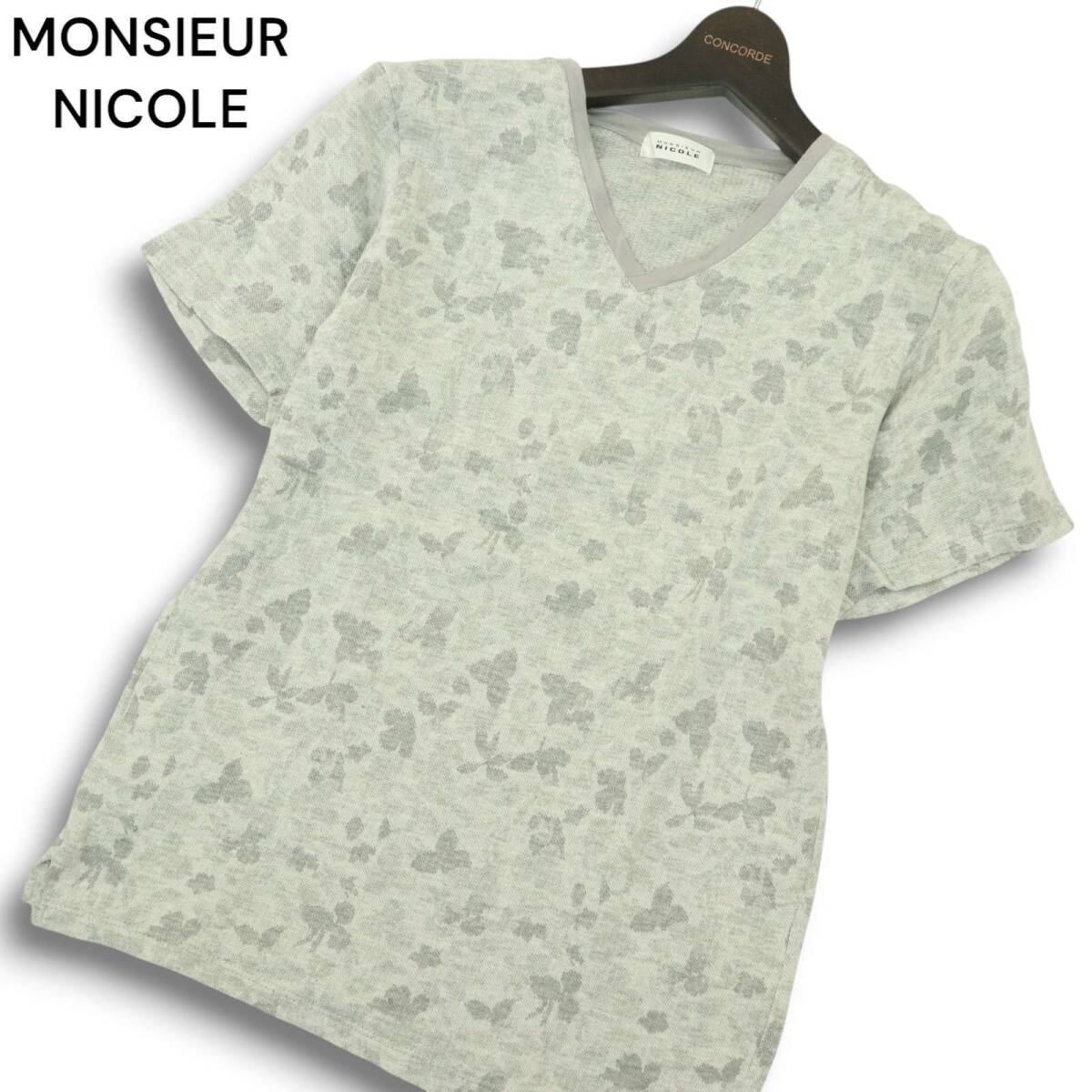 MONSIEUR NICOLE ムッシュ ニコル 春夏 リーフ ボタニカルジャカード柄 半袖 Vネック カットソー Tシャツ Sz.46 メンズ