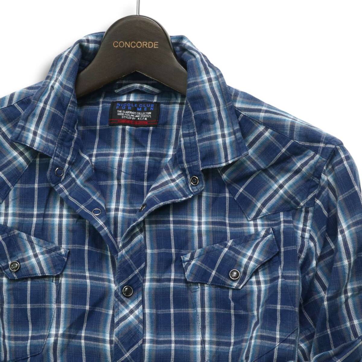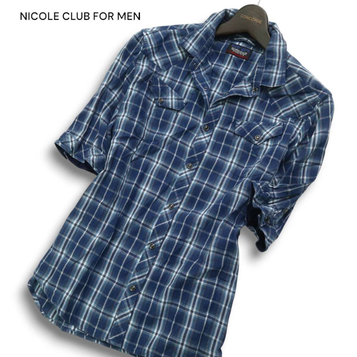 NICOLE CLUB FOR MEN ニコルクラブ フォーメン 春夏 襟袖ワイヤー★ 半袖 チェック ウエスタン シャツ Sz.46 メンズ