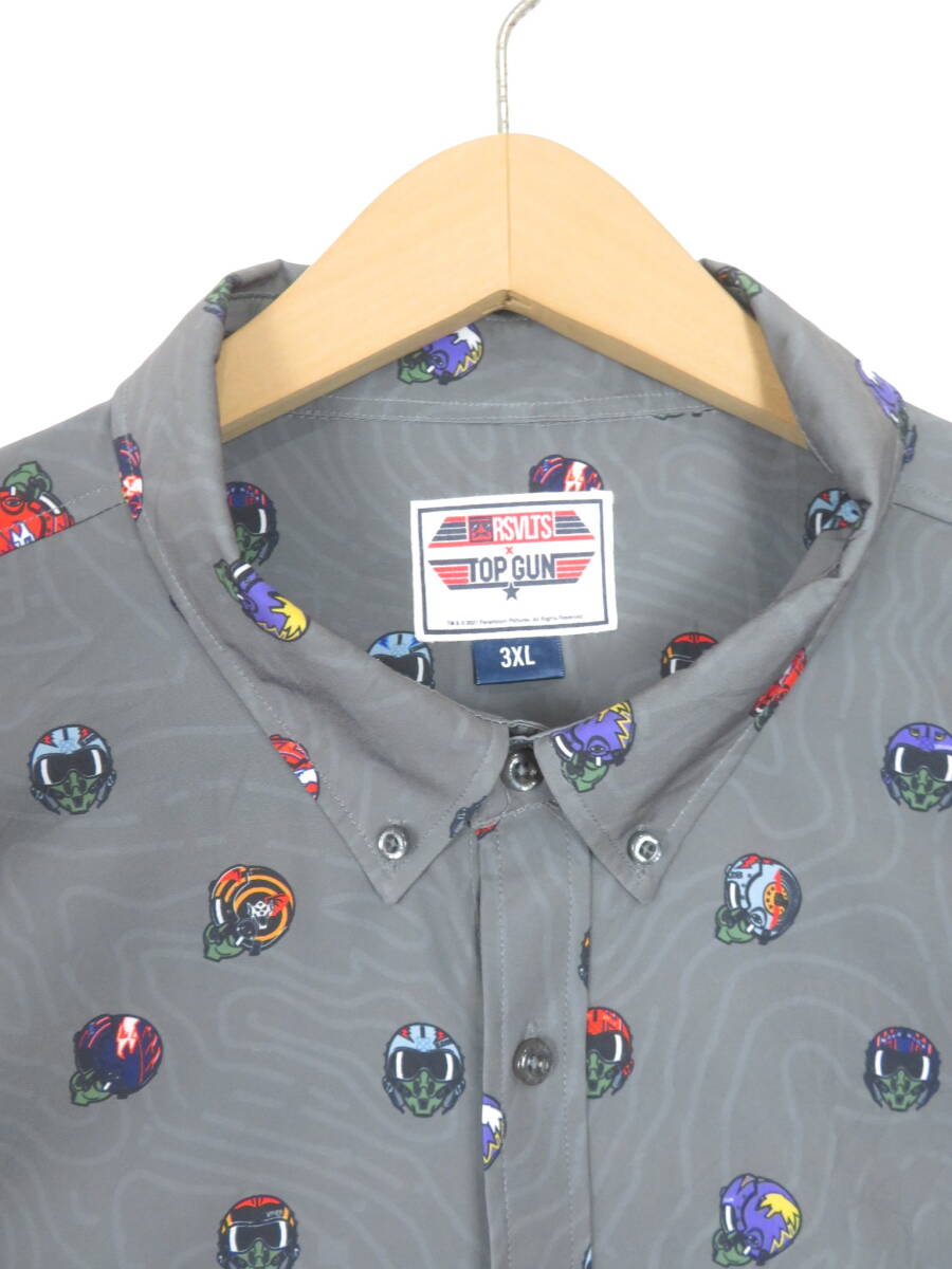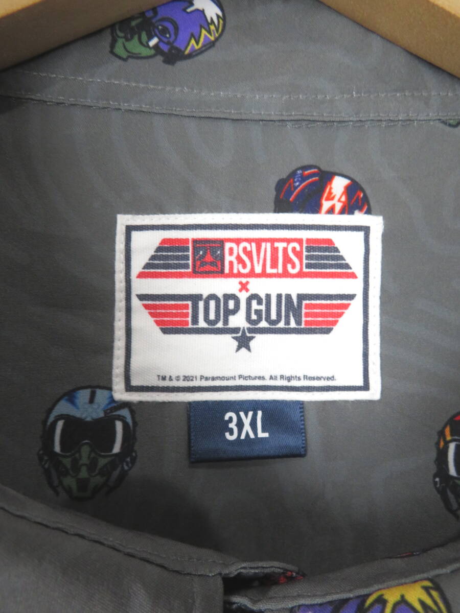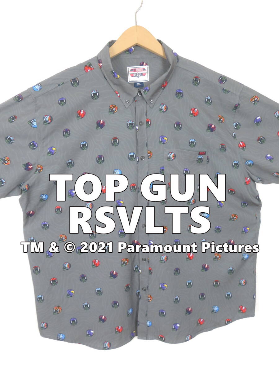 【日本未発売】トップガン TOP GUN コラボ 総柄 アロハシャツ 3XL ★ RSVLTS 映画 大きいサイズ オフィシャル グレー ヘルメット