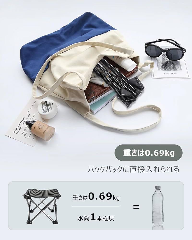 【組立・持ち運び便利】組立は脚を伸ばして広げるだけで簡単です。1秒開け閉め。コンパクトで持ち運ぶ場合もあまりスペースをとらず、折りたたみ傘のように使えて便利です。重さは690gで超軽量です。収納袋が付いています。
