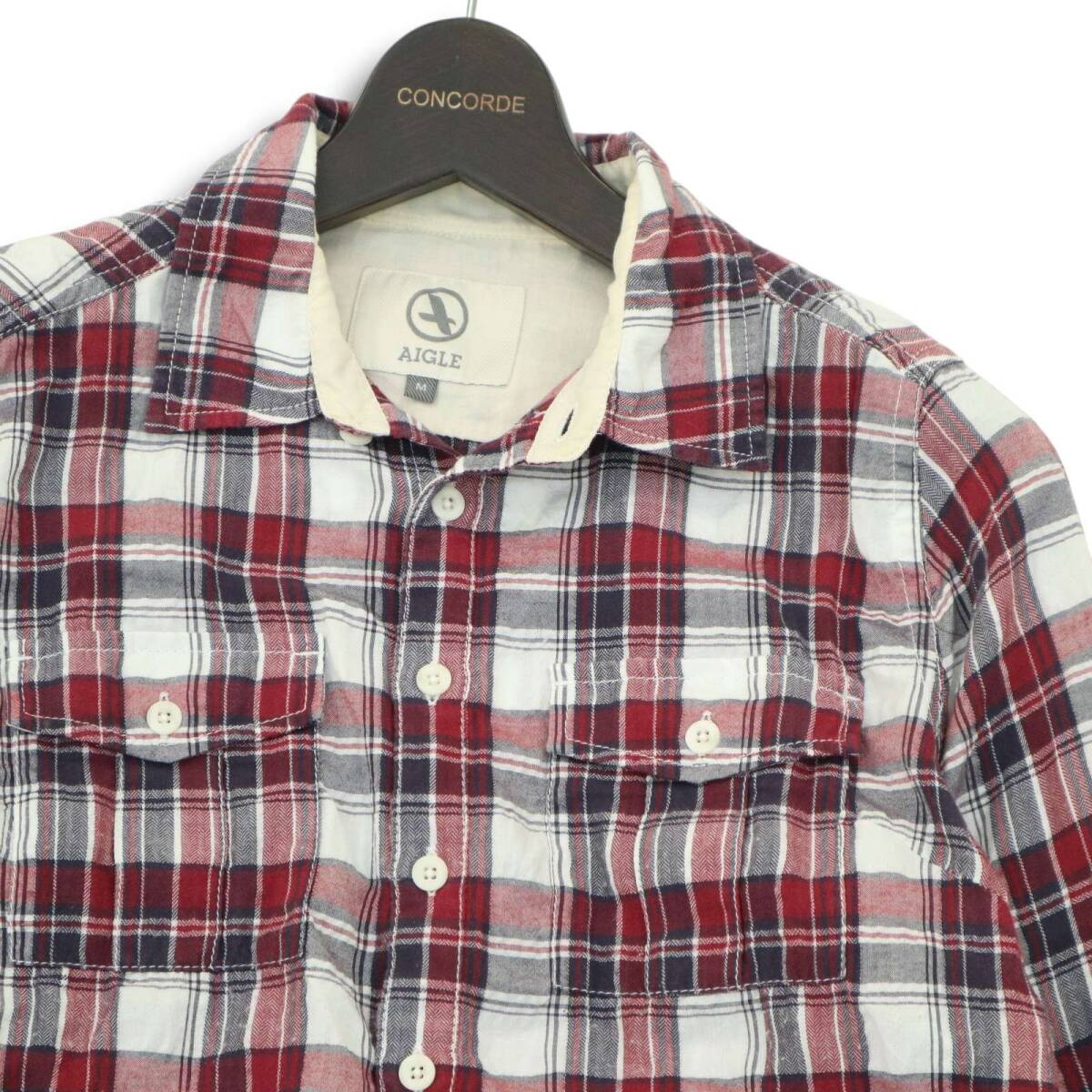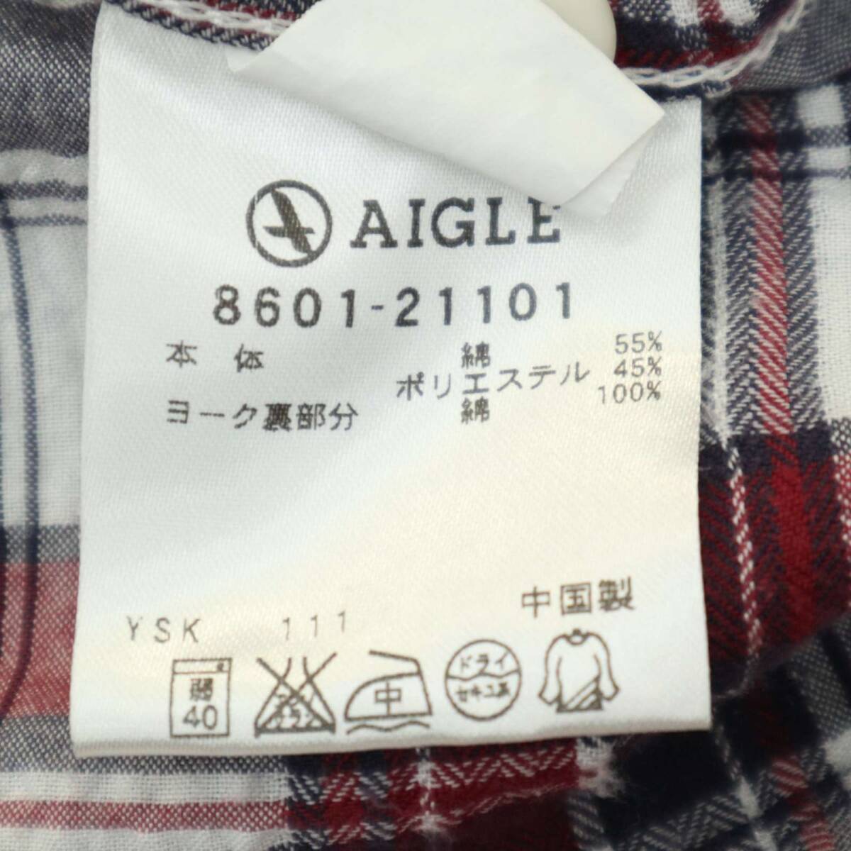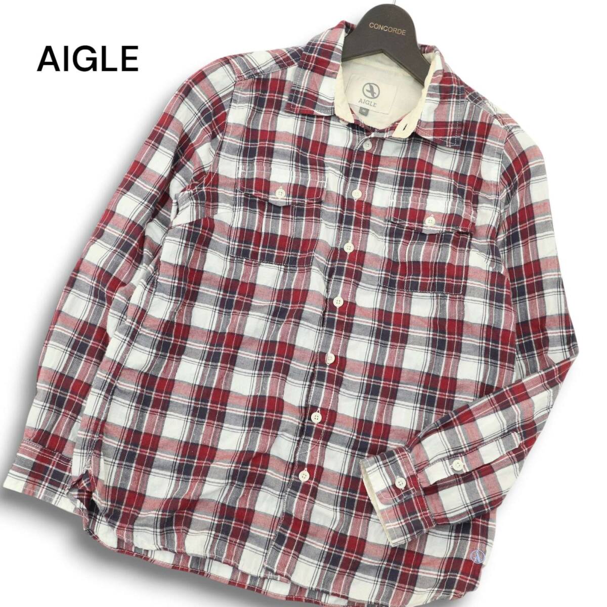 AIGLE エーグル 通年 ロゴ刺繍★ 長袖 ワーク チェック シャツ Sz.M メンズ