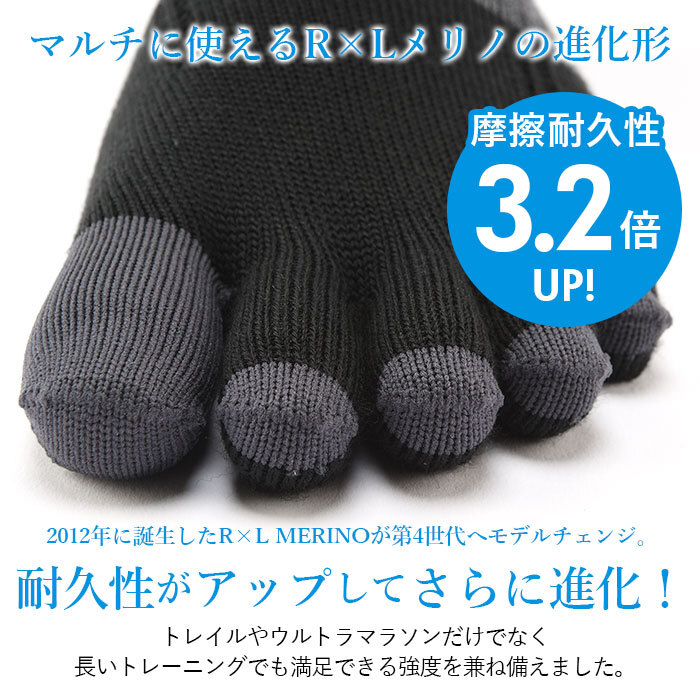 商品説明 | ・・【アスリートから支持される最高品質】 ・全てのアスリートが求める“究極の素足感覚”を実現!「R×L メリノウール ランニング ソックス」 ・【マルチに使えるR×Lメリノの進化形】 ・・2012年に誕生したR×L MERINOが第4世代へモデルチェンジ。耐久性がアップしてさらに進化! ・【全天候対応・メリノウール素材】 ・自然環境に順応し、湿気をよく吸収。汗をかいても湿った感じの少ない厳選されたメリノウール採用。 ・【メリノウールならではの調温調湿性】 ・繊維の網目を細かく仕上げることで保温性が向上。同時に高い調湿性によりムレによる不快感も低減。 ・【靴下・超立体化計画!】 ・各指の形に合わせて指の下側を「超立体編み加工」。優れたフィット感で快適に走れる5本指タイプ。 ・【安定したサポート性】 ・伸縮性に優れたゴムを編み込み、リブを効かせた足裏の生地が土踏まず内側を立体的にサポート。 ・【ずれにくい特殊製法】 ・足首・踵部分は、靴下だけで足首が自立する特殊製法で仕上げ、これまで以上の素足感覚を体感! ・【摩擦強度が3.2倍にアップ】 ・ウール主素材の内側にポリエステルを包み込み、ソフトな風合いはそのままに3.2倍の強度を実現。 ・※国際宇宙ステーションの船内服にも採用された実績のあるエキストラファインメリノを使用。摩擦耐久性が、MW-2001シリーズから3.2倍アップ。 ・【親指&各指先+踵周り補強】 ・シューズ内部の当りが原因で穴あきが生じやすい踵と親指、各指先にナイロン糸を採用し耐久性UP。 ・【長時間履いてもクッション性が持続】 ・柔らかいのに型崩れににくいのもメリノウールの特徴。着用時間が長いほど快適さを実感。 ・【優しくソフトな肌触り】 ・従来のウールより繊維内のフィラメントが細く、肌触りも格段に向上。チクチクする不快感も軽減。 ・【普段使いしやすいシンプルカラー】 ・シックなカラーをベースに深みのある色合いを組み合わせた大人のバイカラー。通勤通学にも最適。 ・【全てのアスリートに快適さをお届け】 ・トレイルやマラソン等、高いパフォーマンスを求めるアスリートの方に。安心のジャパンメイド。 |