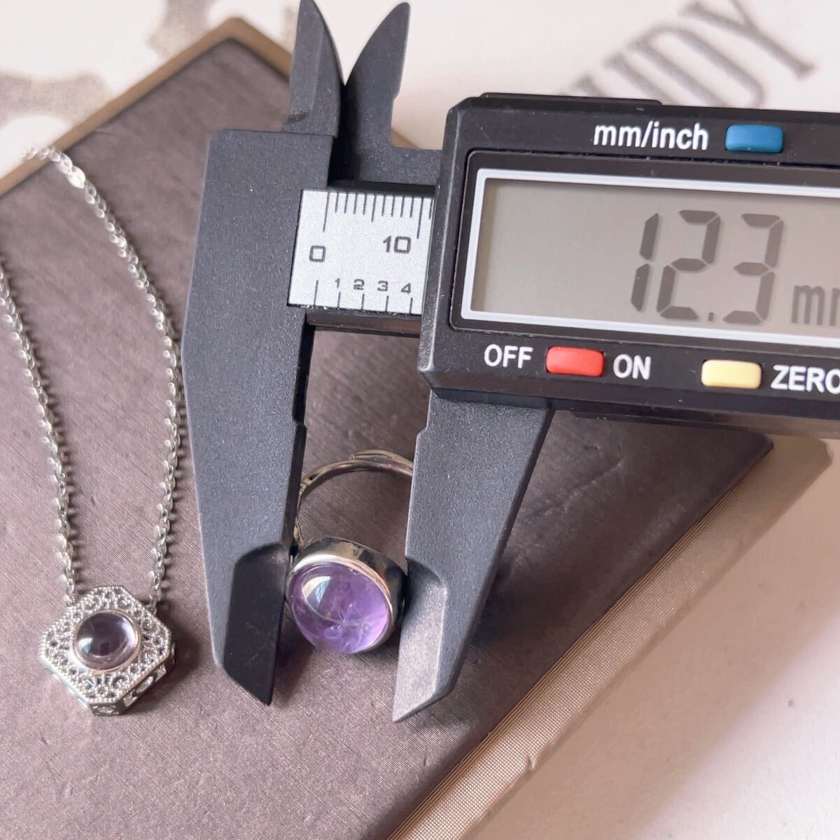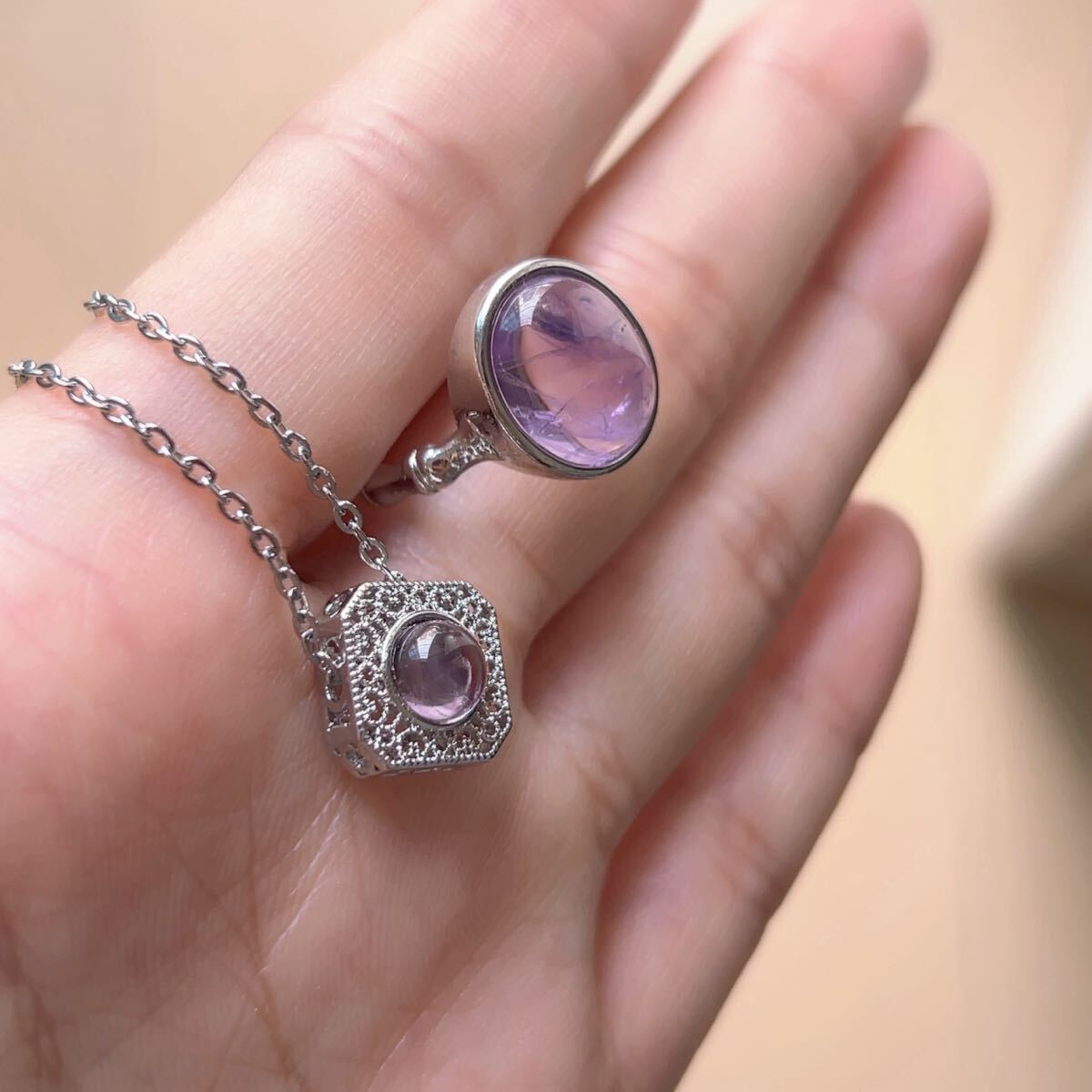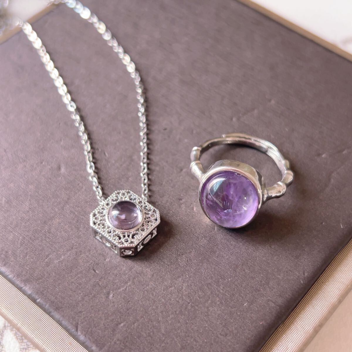◇紫水晶◇アメジスト◇ネックレス ペンダント+リング(指輪)計2点セット◇天然石◇パワーストーン◇プレゼントにも038S7213