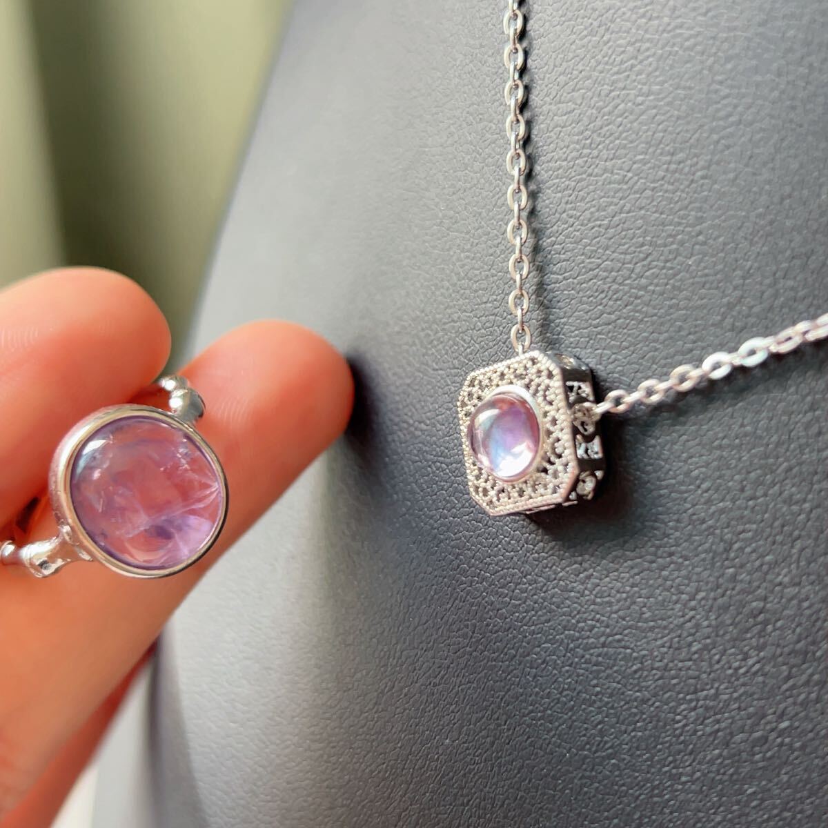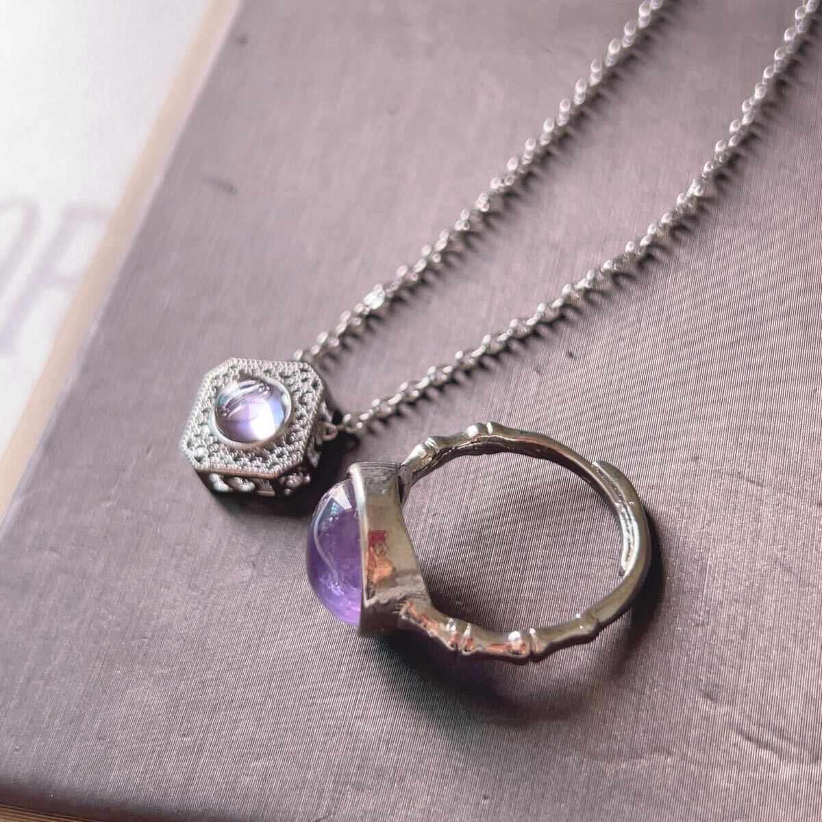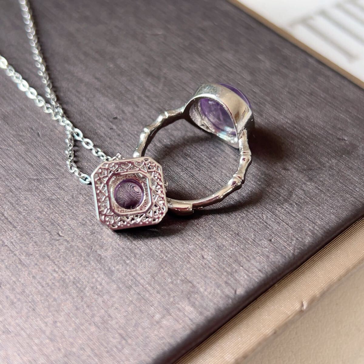 ◇紫水晶◇アメジスト◇ネックレス ペンダント+リング(指輪)計2点セット◇天然石◇パワーストーン◇プレゼントにも038S7213