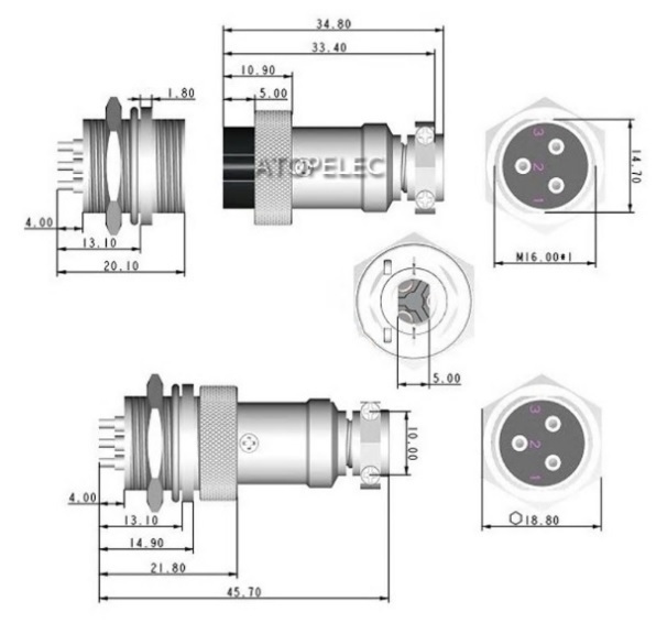 1ペアGX16 16mm 6ピン メタルコネクターオスプラグ+メスプラグ+メクラキャップ(サービス品) 3点セット!