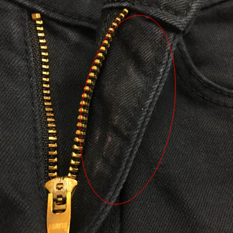 【状態】ファスナー部分に色あせがあります。他にも複数あります。 両裾にスレと折り返しの跡があります。 ファスナー部分に色移りがあります。 ご理解の上お買い求め下さいませ。