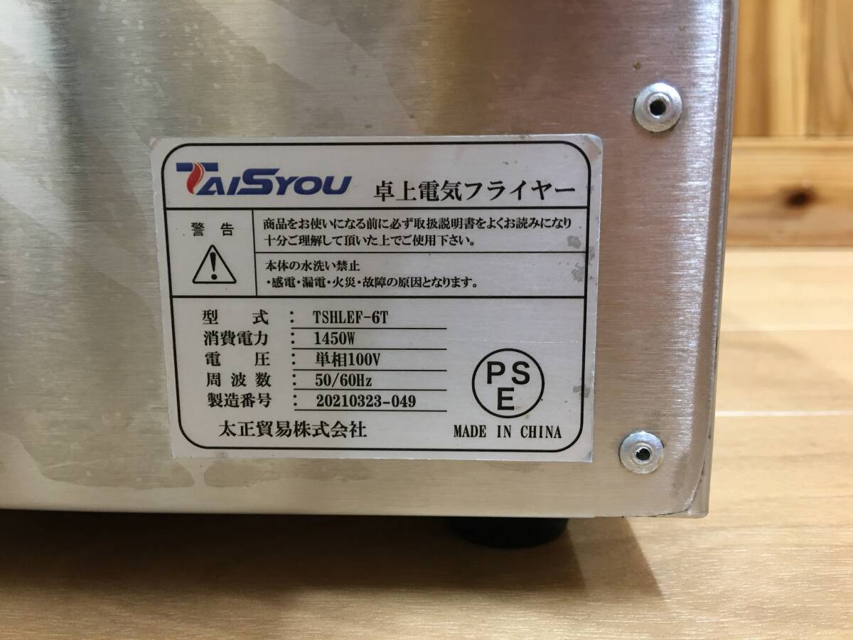 | TAISYOU 卓上型電気フライヤー TSHLEF-6T 2021年製 100V 1槽式 6L 業務用 厨房機器 中古動作品 | |||
