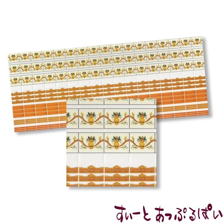スペイン製のドールハウス用タイルシートです。こちらは、カットして使えるボーダーのコレクションシートです!プレーンなタイルのアクセントとして、いかがでしょうか?キッチン等に素敵ですよね!貴方のセンスで素敵なお部屋に仕上げてくださいね!シートのサイズは290x100 mm です。スケールは1/12です。スペイン直輸入です!