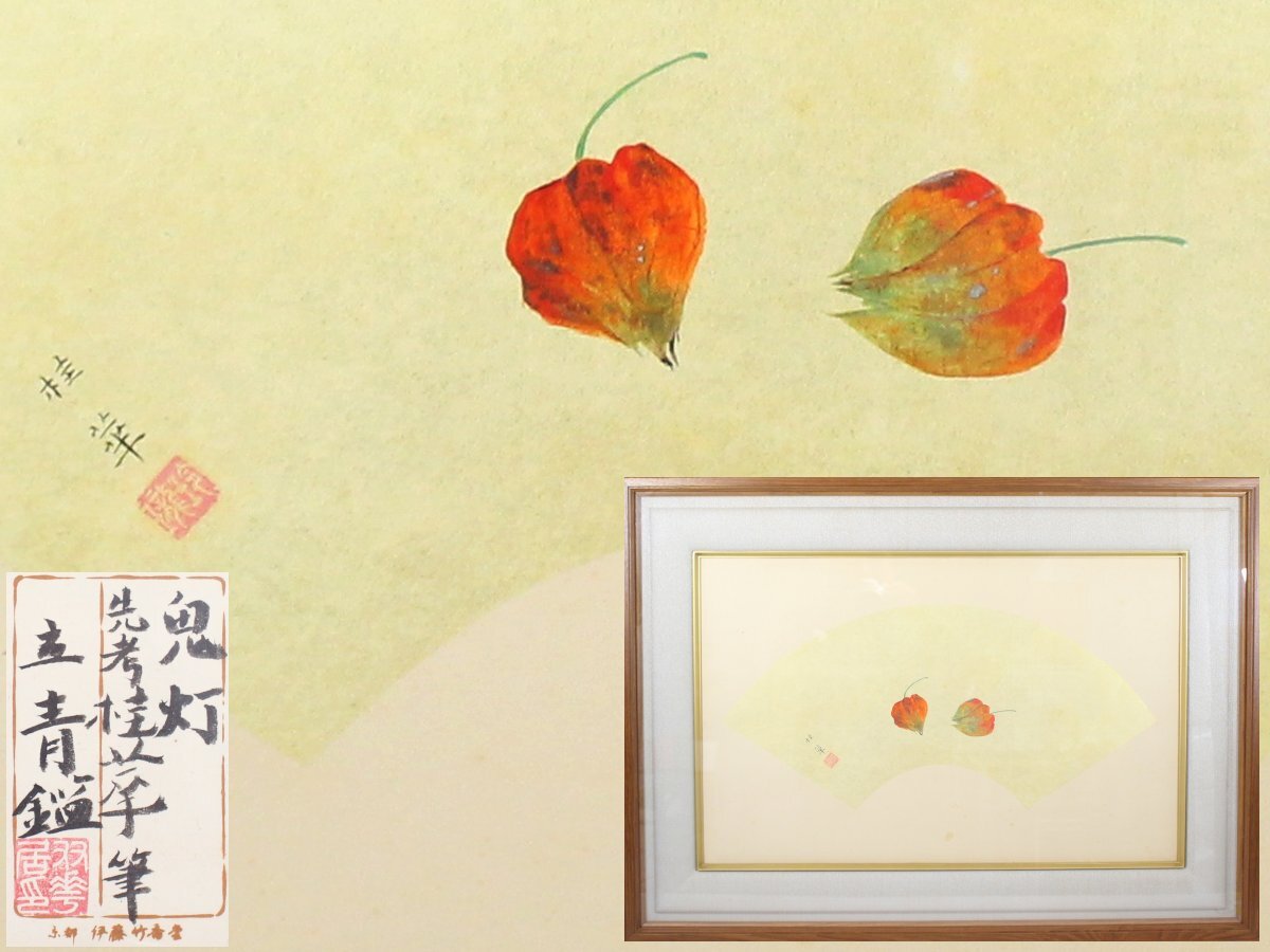 | ■真作■金島桂華・「鬼灯」・額装・直筆サイン・立青 鑑・真筆・黄袋・タトウ箱・f7131h | ||||||||||||||||||||