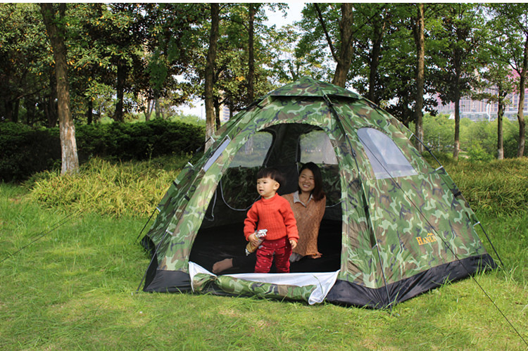 未使用 自動3秒開キャンプワンタッチテントUVカットアウトドア用品6~8人用入口2窓4