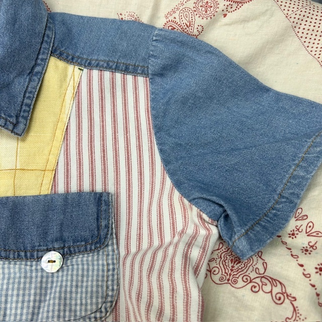 #vintage#ヴィンテージ#アメリカ古着#old#オールド#70年代#80年代#90年代#70s#80s#90s#シャツ#半袖#春夏#コットン#切り替え#ストライプ#ダンガリー#デニム#クロップド