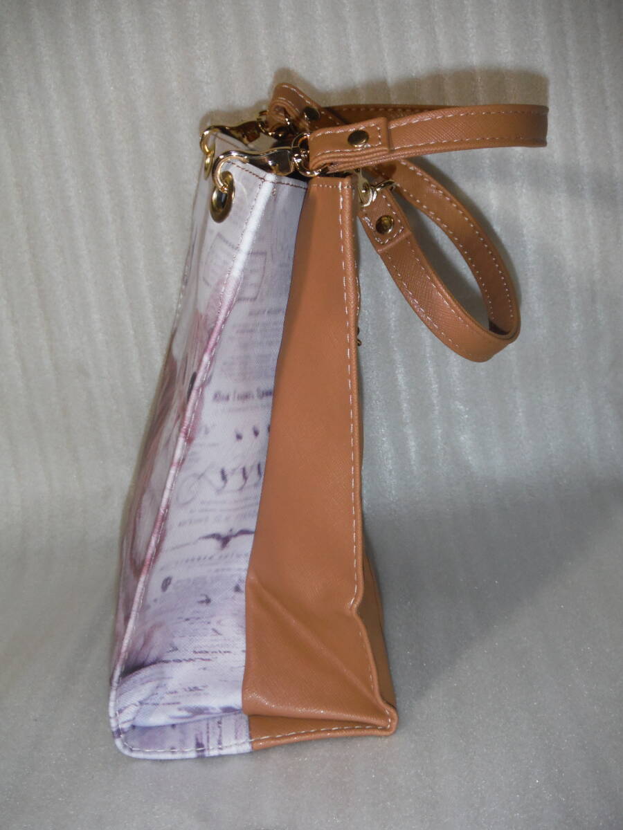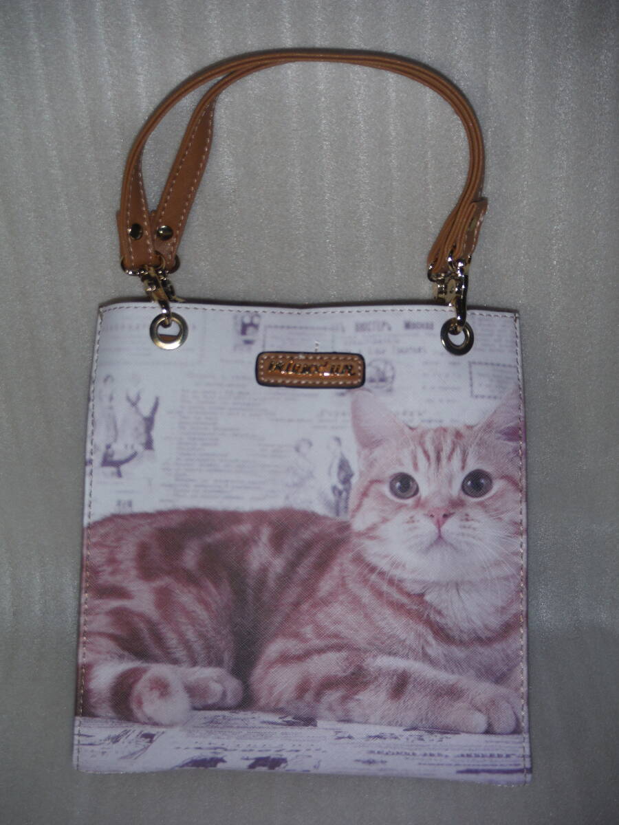 新品!ネコ柄 ねこ柄 猫柄 小型バッグ ハンドバッグ 手さげバッグ 白&カーキー