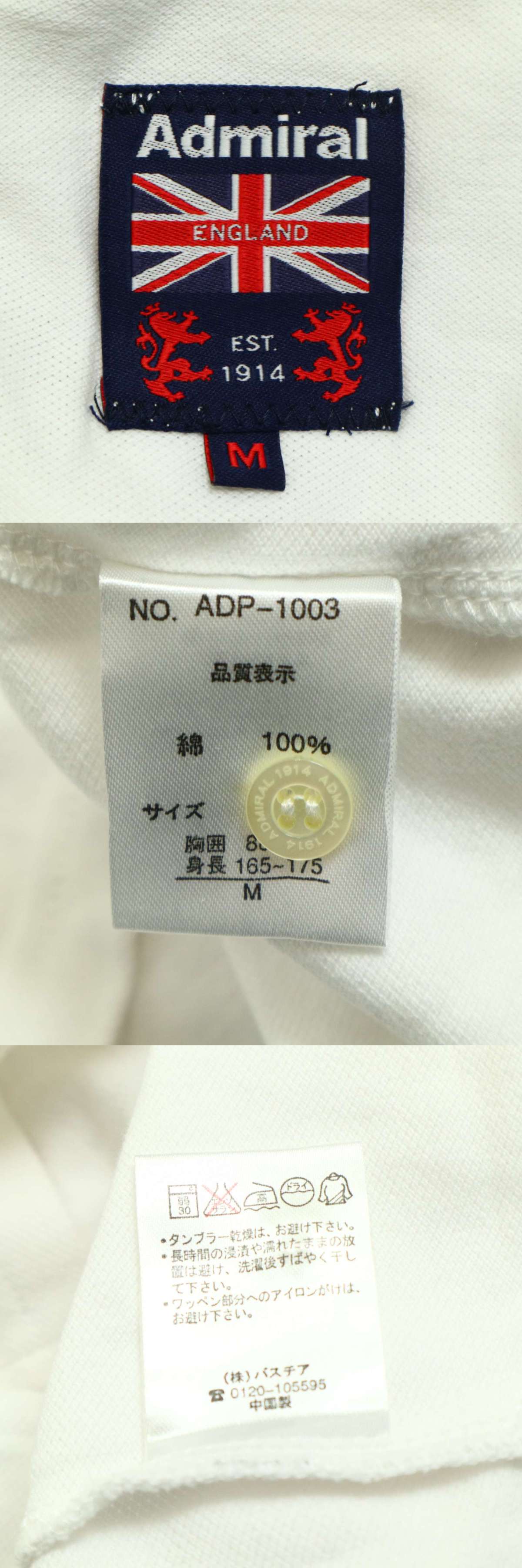 Admiral アドミラル 春夏 ロゴワッペン★ 半袖 鹿の子 ポロシャツ Sz.M メンズ 白