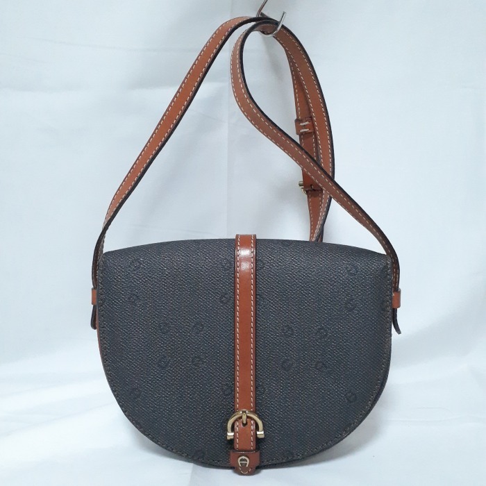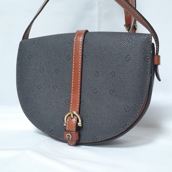 美品 Etienne Aigner エティエンヌ アイグナー レザー 肩掛け 斜め掛け ショルダーバッグ ポーチ グレー