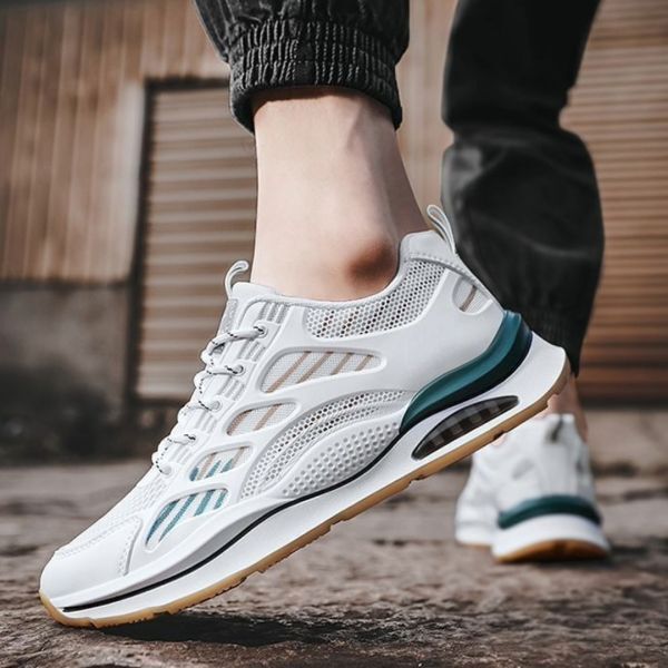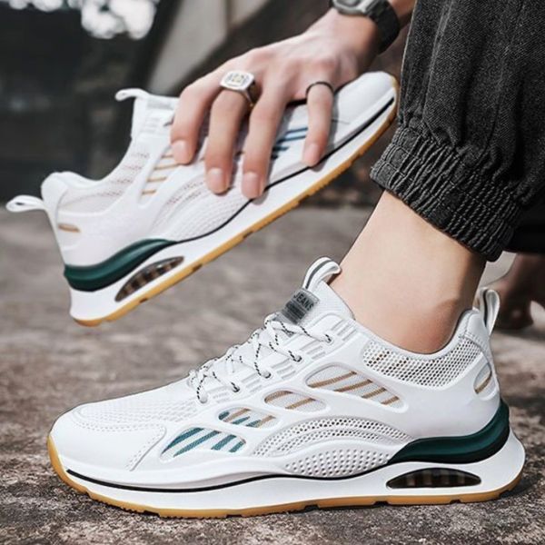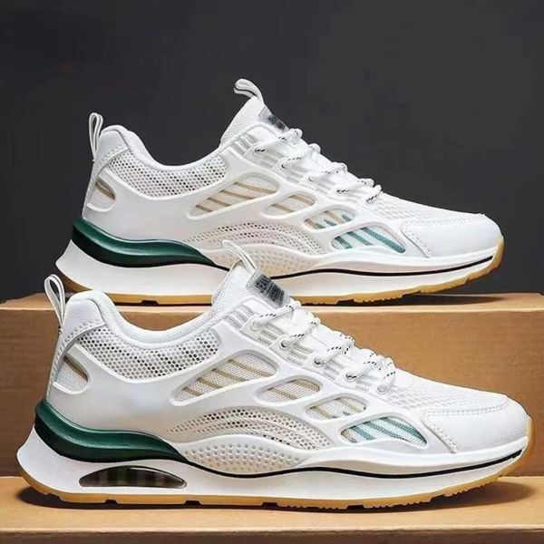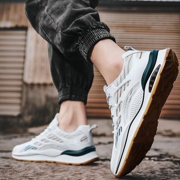 s279 25.5cm 白緑 厚底5cm 派手 通気性 エアー風シール メッシュ スニーカー ソール ダッド 夏 靴 シューズ ストリート B系 HIPHOP 韓国 白