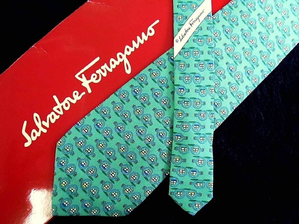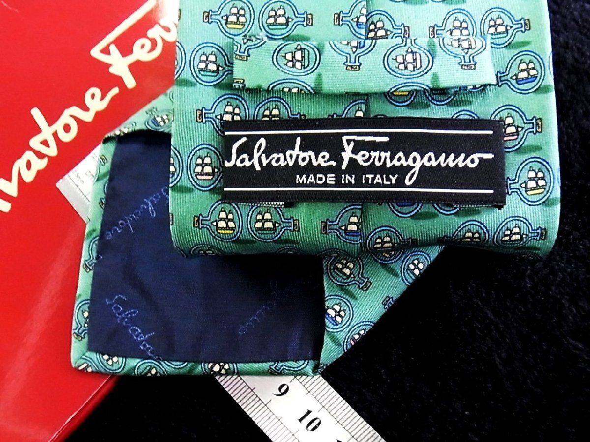★今週の特売★6520★高級ブランド【キャラ柄】★フェラガモ【ボトルシップ 柄】ネクタイ★