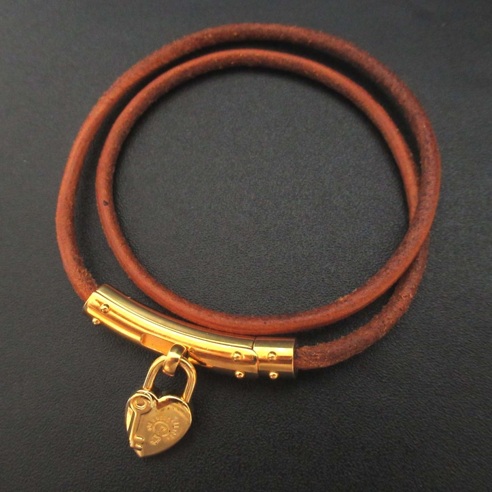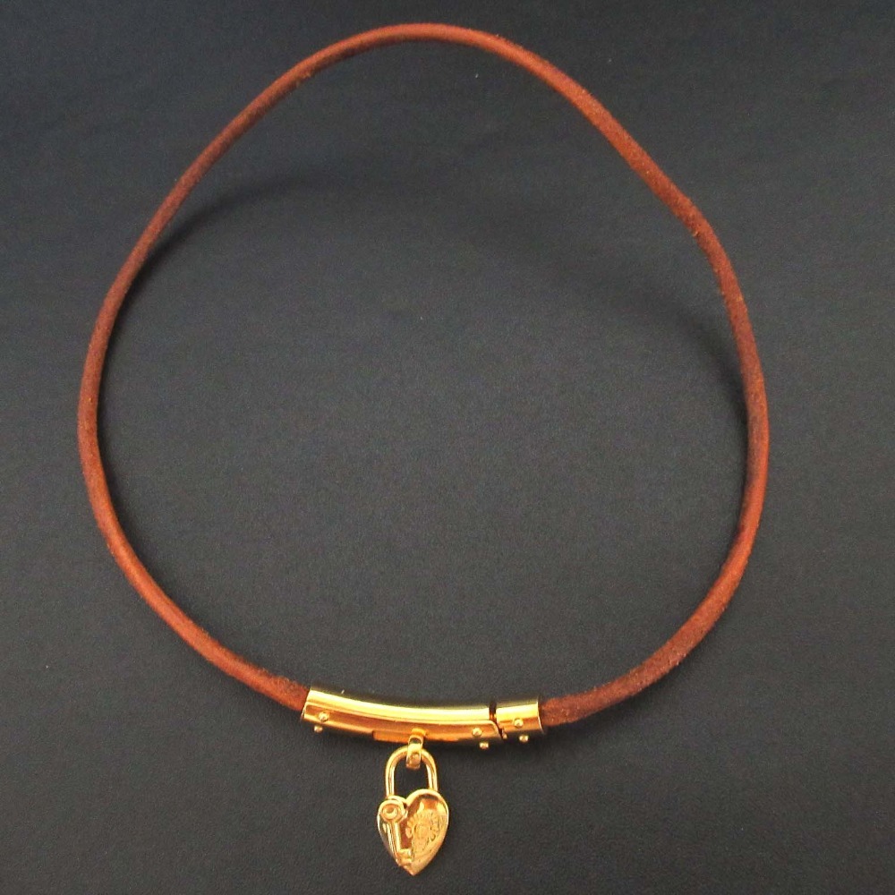 商品名:HERMES エルメス ヴィヴィリデ ファンタジーハート 2連 ブレスレット チョーカー ブラウン×ゴールド金具
